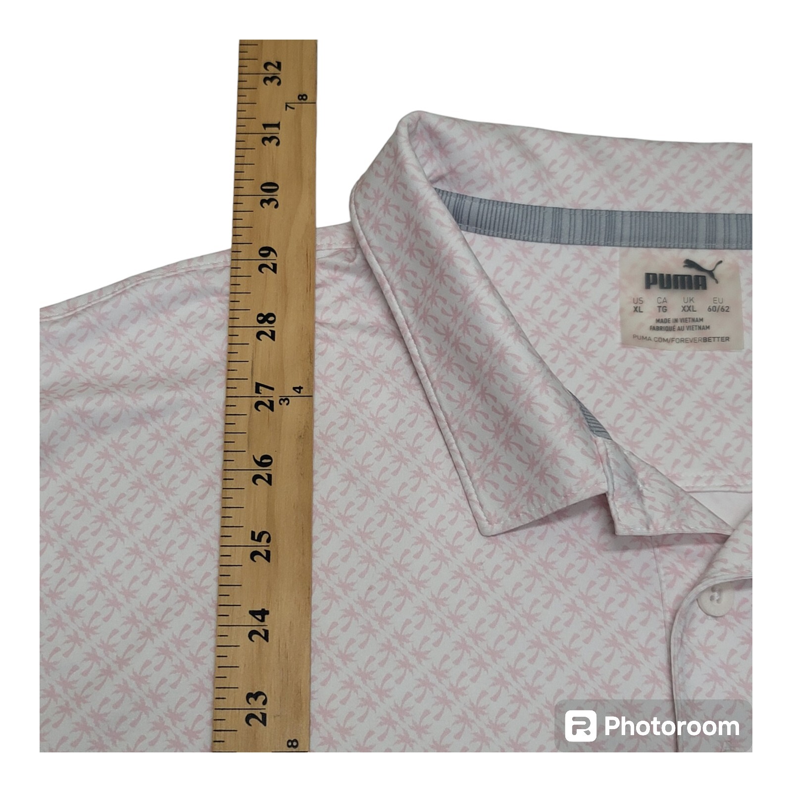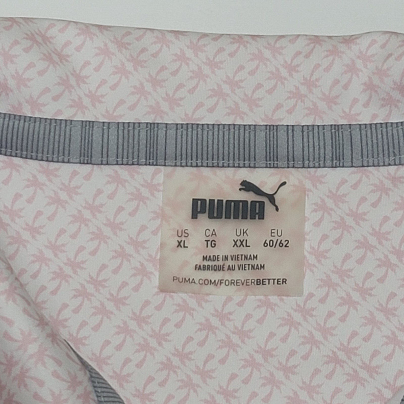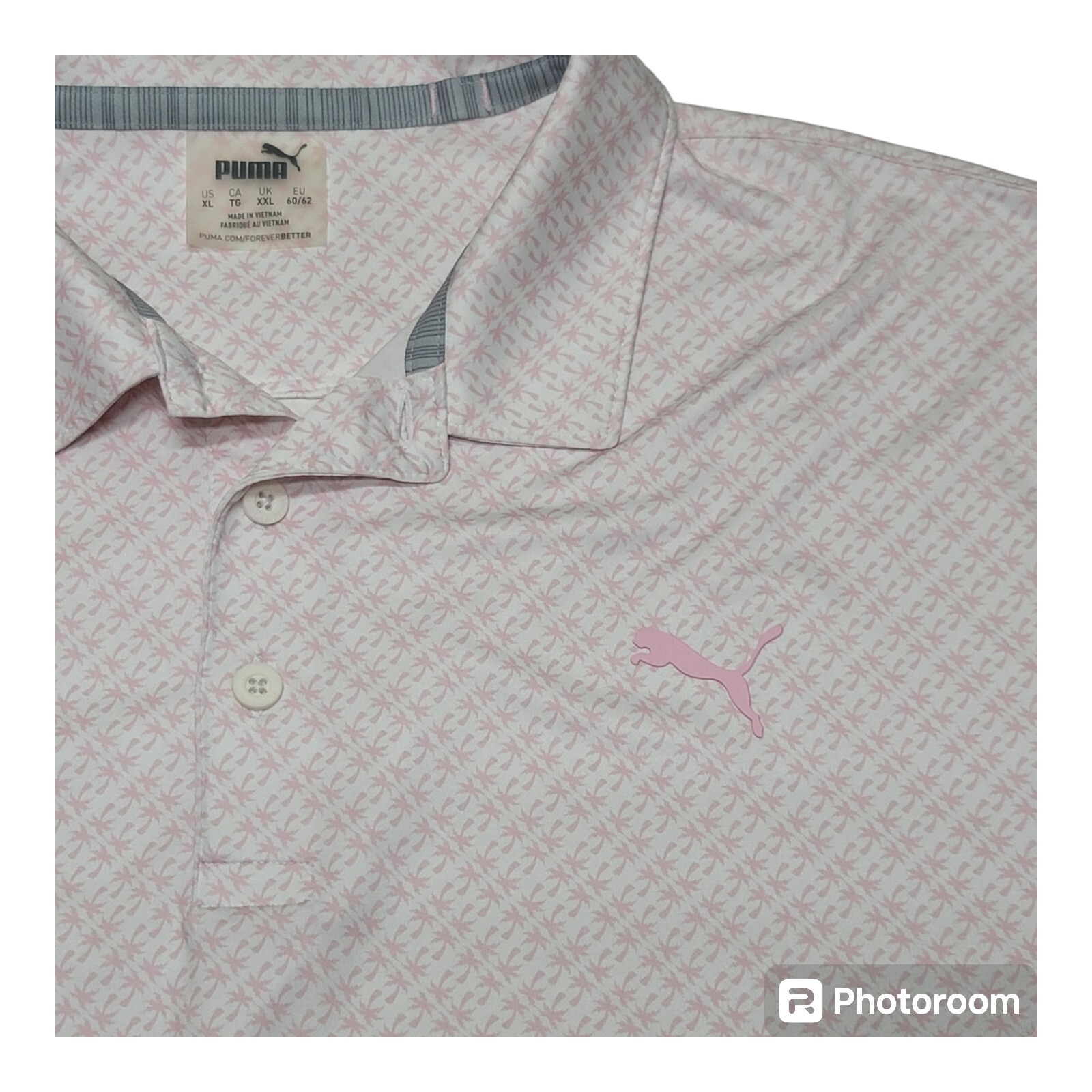 как выглядит Puma Golf Polo Shirt Mens XL Palm Tree All Over Print Light Pink Short Sleeves фото