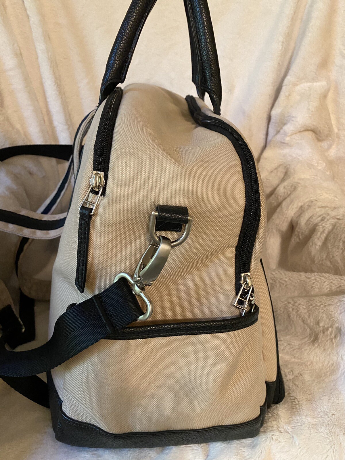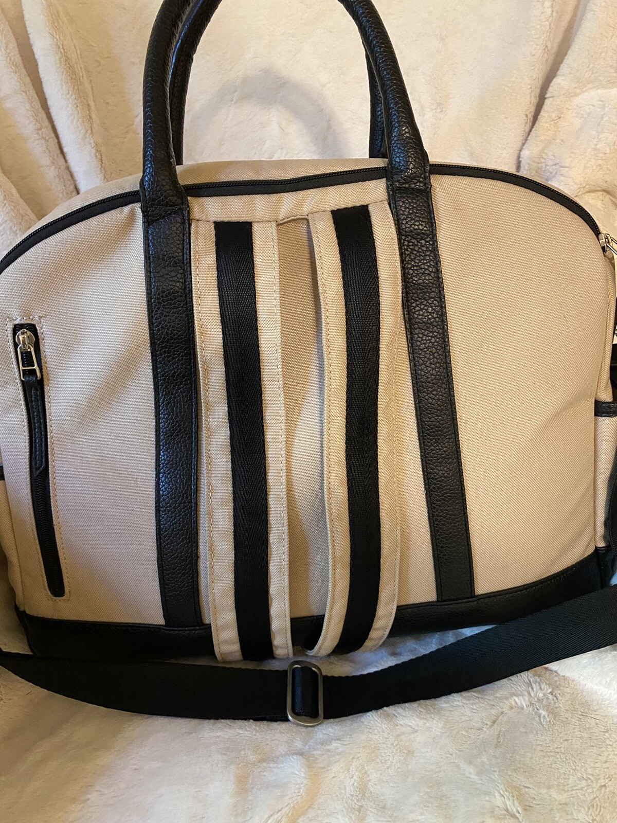 FP Diaper Bag Black Leather beige Canvas adjustable Shoulder Strap Back pack