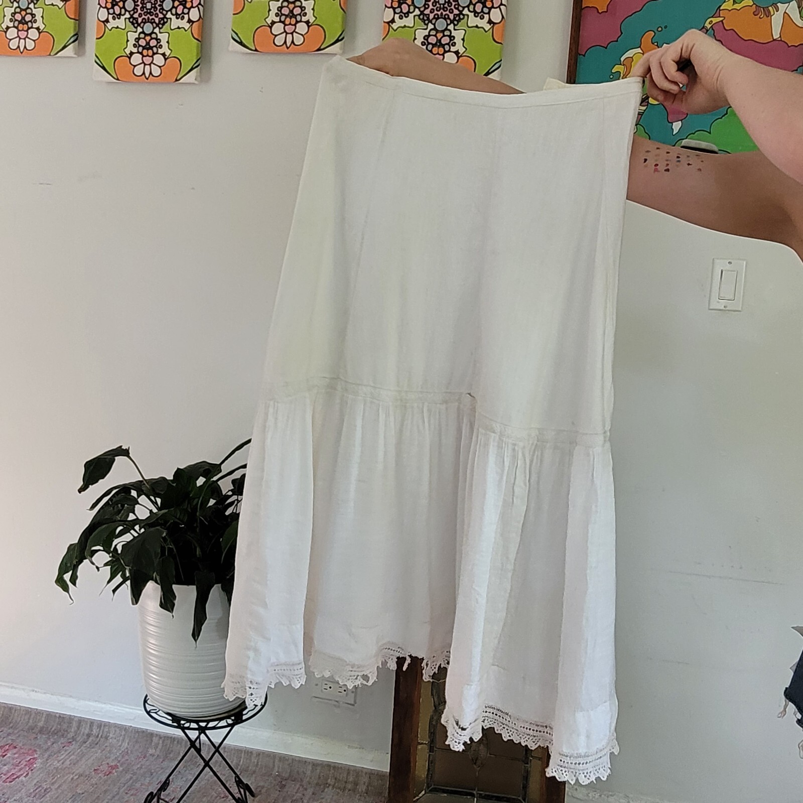 Antique White Cotton Skirt Crochet Lace Trim Button Up Small AS IS