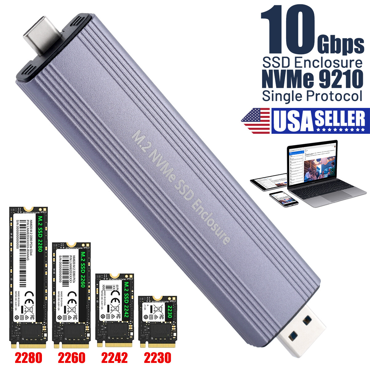 M.2 NVMe SSD to USB 3.2 External Case Hard Drive Enclosure Converter