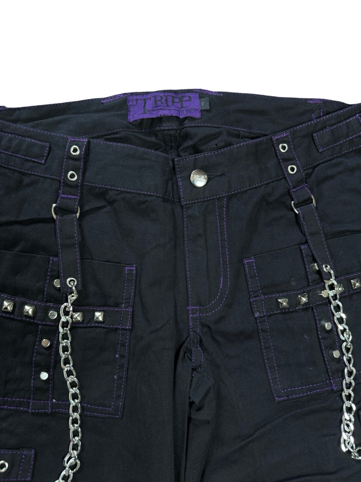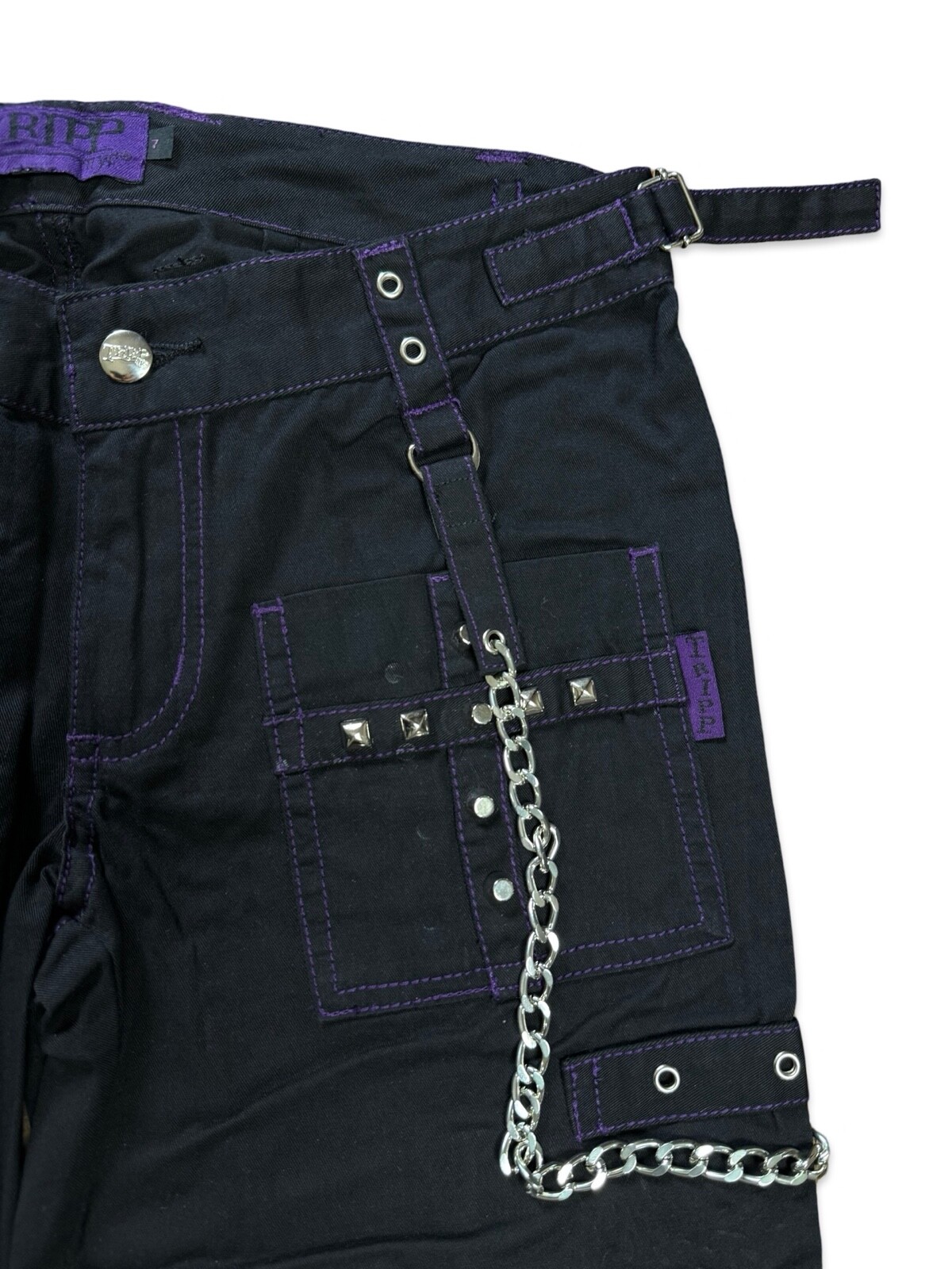 Tripp NYC Rare Y2K Goth Rave Skate Grunge Metal Black Baggy Bondage Pants 7/M