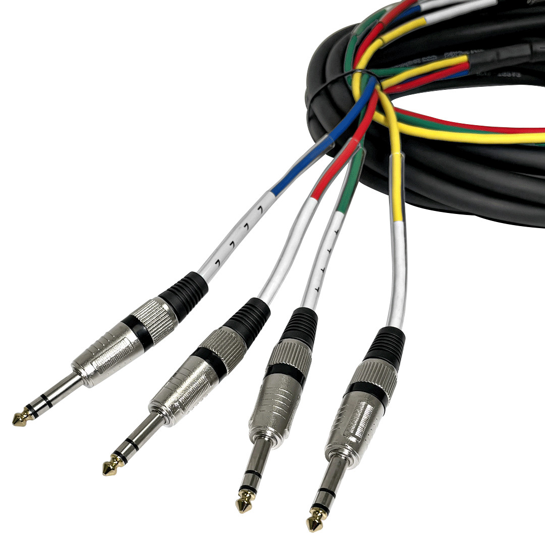 4 Channel 25 Foot 1/4 Inch TRS Snake Cable - TRS Fantail Cable Snake 25 Feet