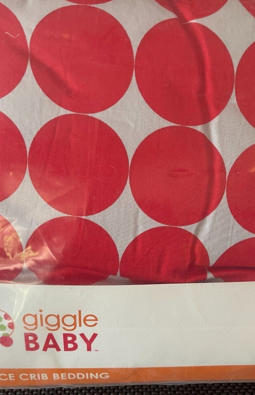 Nursery Crib Bedding Red Gray Dots 3-Piece Set 130 Brand New Giggle Baby