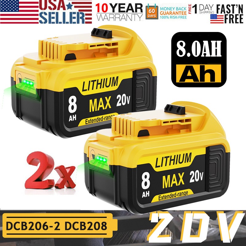 2Pack For DeWalt 20V 20 Volt Max 8.0AH Lithium Ion Battery DCB206 DCB205 DCB204
