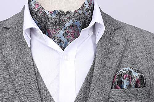 Ascot Ties for Men Paisley Cravat Tie and Pocket Square Set A-blue Pink Foral