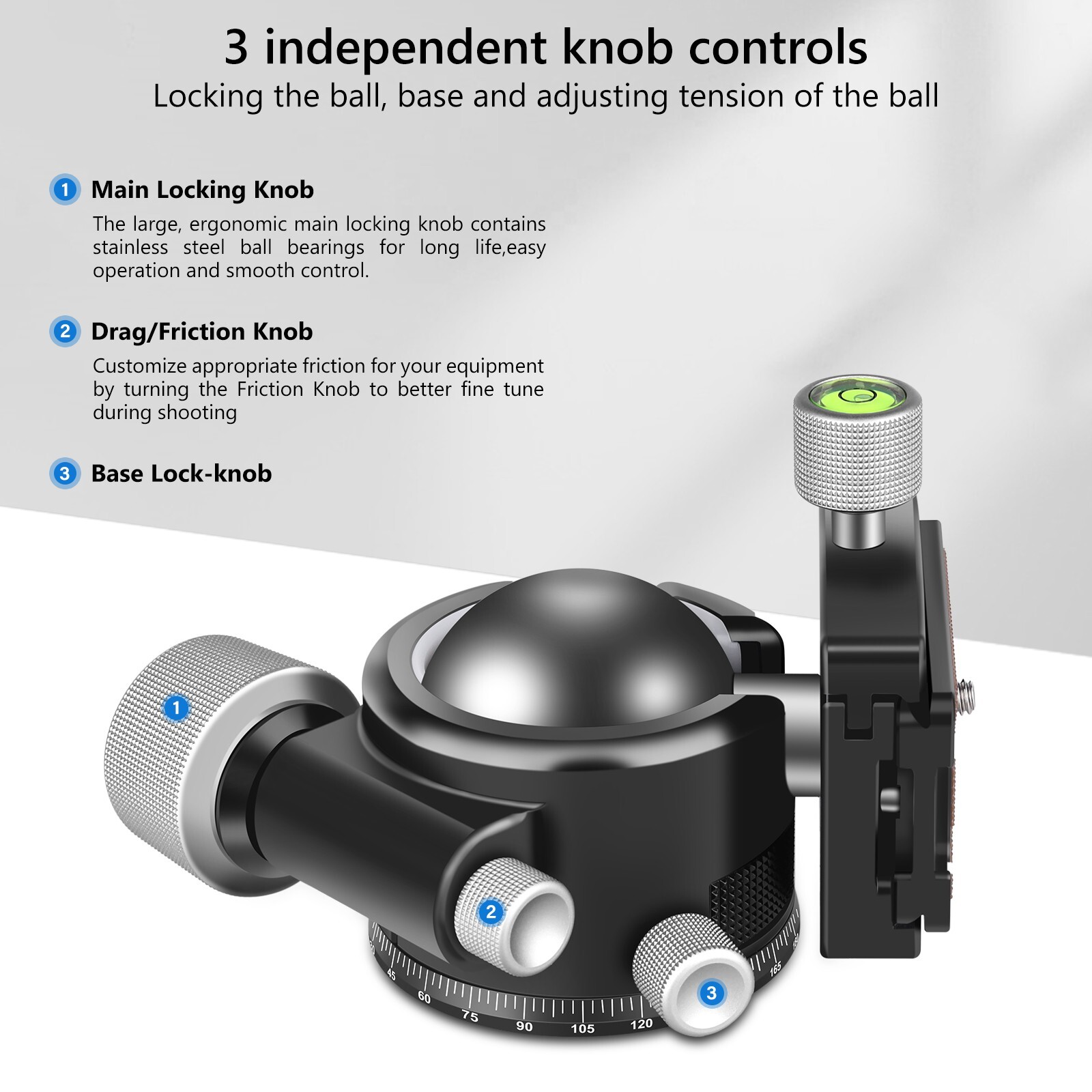 44mm Low Profile All Metal CNC Tripod Ball Head Heavy Duty Head Load 66lbs
