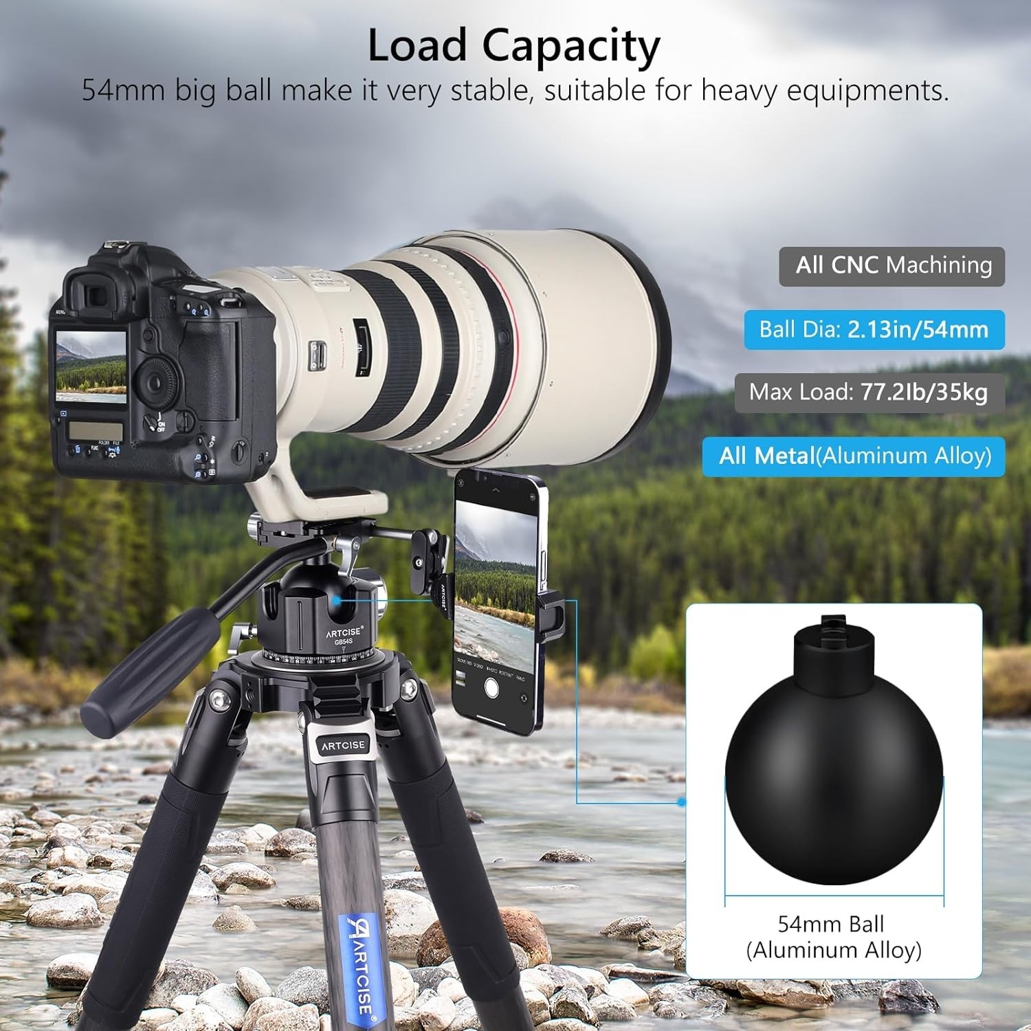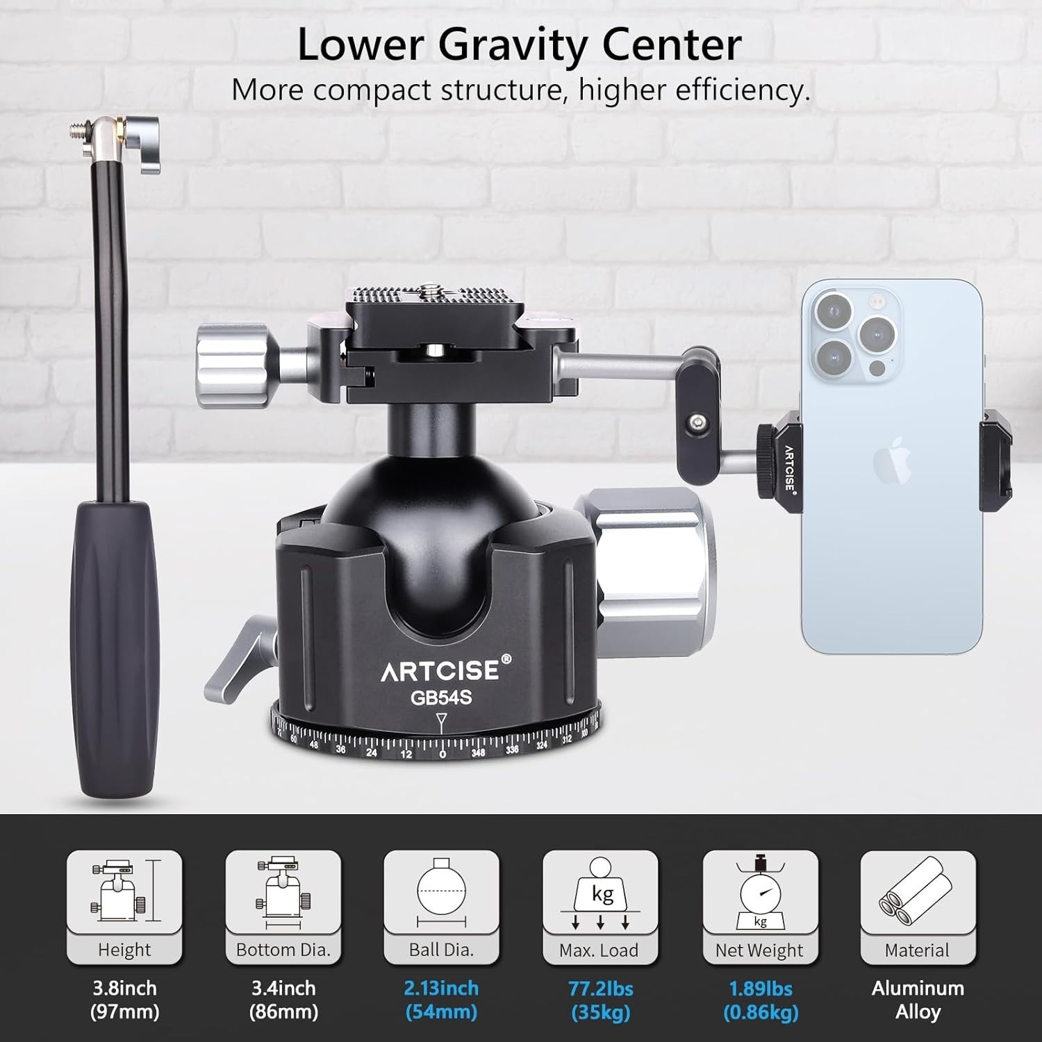 54mm Heavy Duty Ball Head Low Profile Tripod Head W/Handle Load 70lb/35kg