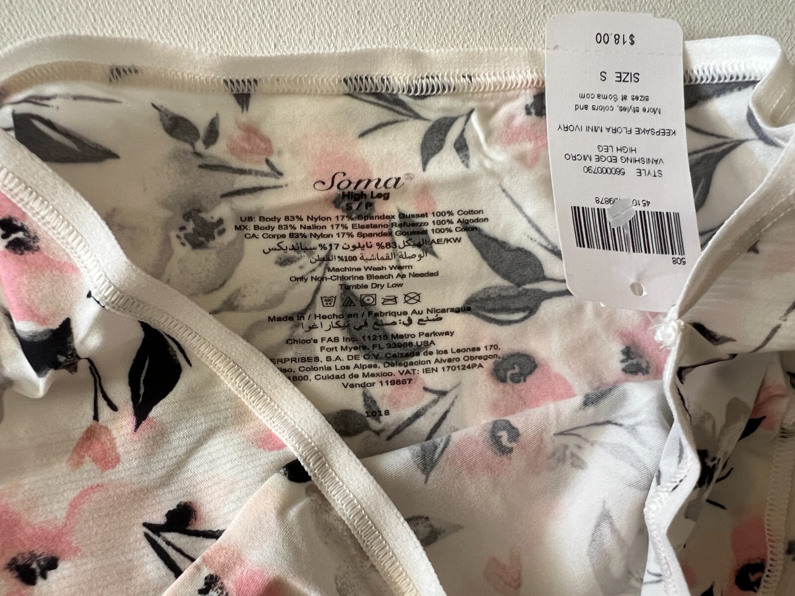 SOMA Size Small Vanishing Edge Microfiber High Leg Panties In Floral Mini Ivory