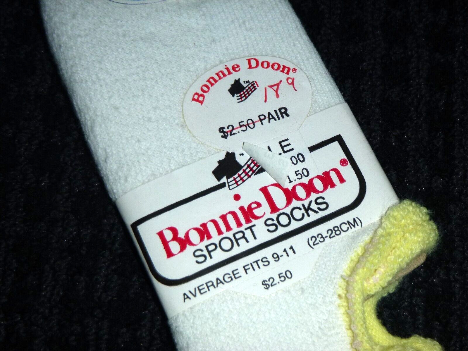 NOS Vtg Bonnie Doon Roll Top Ankle Sport Socks Yellow White
