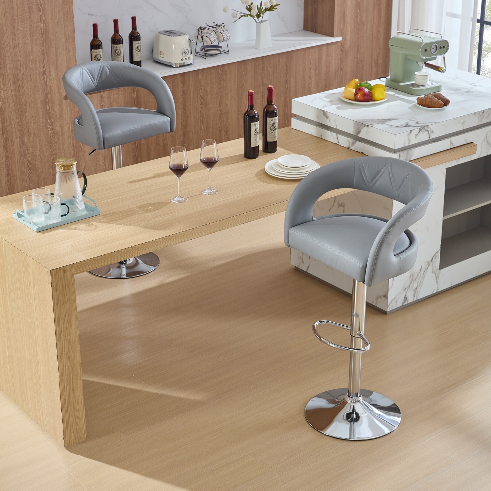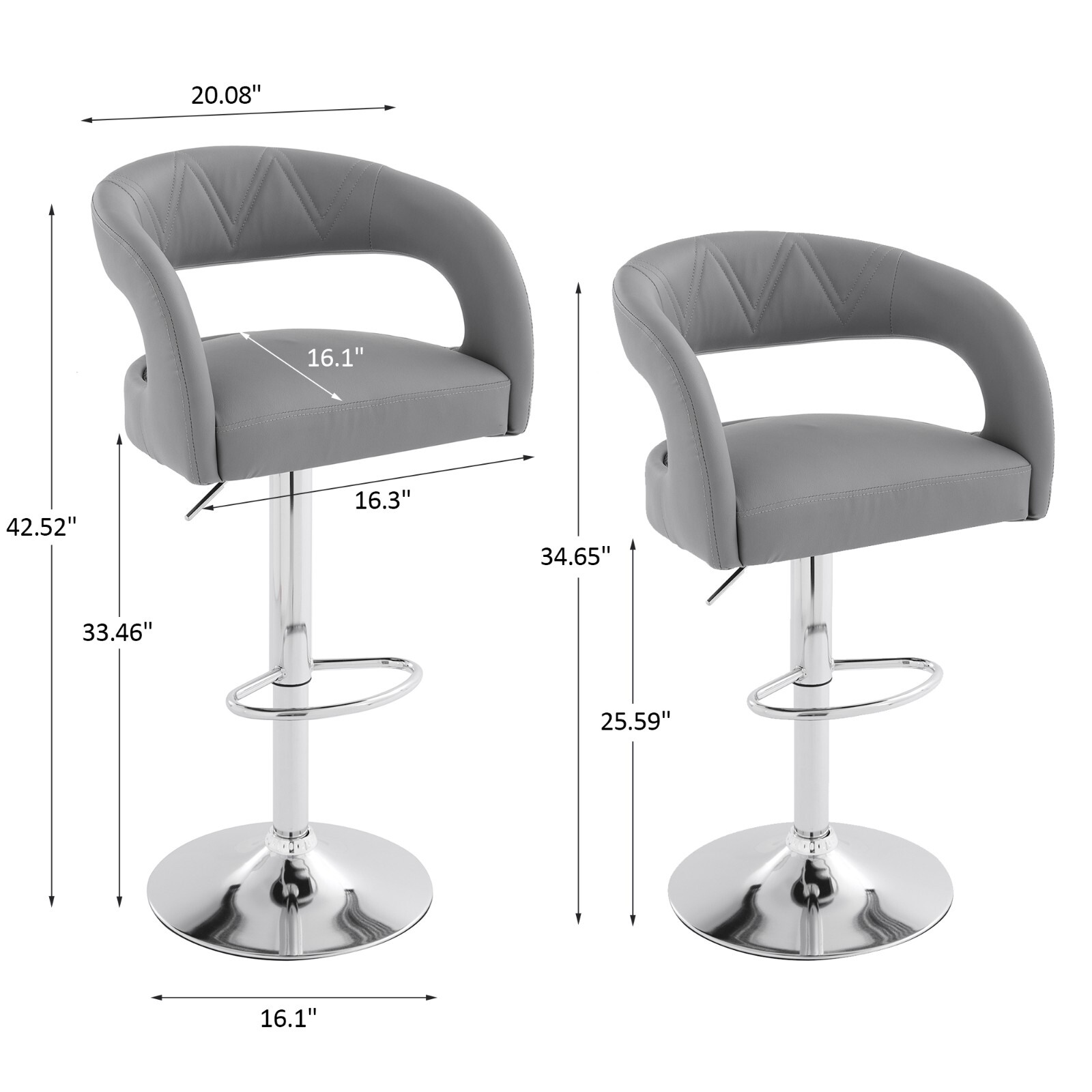 Pu Leather Bar Stool Set of 2 Adjustable Swivel Counter Bar Chair With Armrest