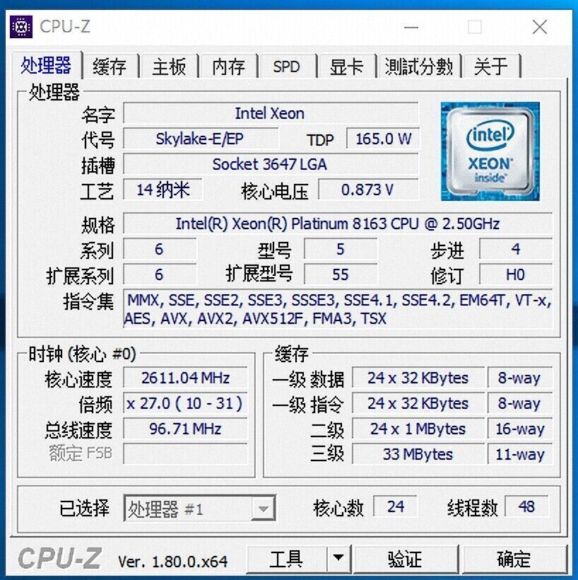 Processor Model: Intel Xeon Platinum 8163
