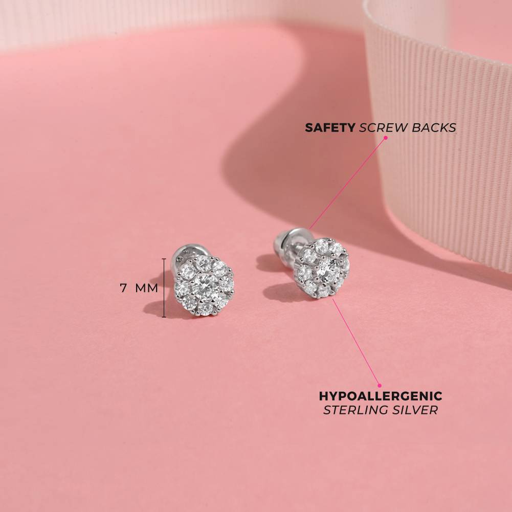 CZ Solitaire Kids / Children's / Girls Earrings Screw Back - Sterling Silver
