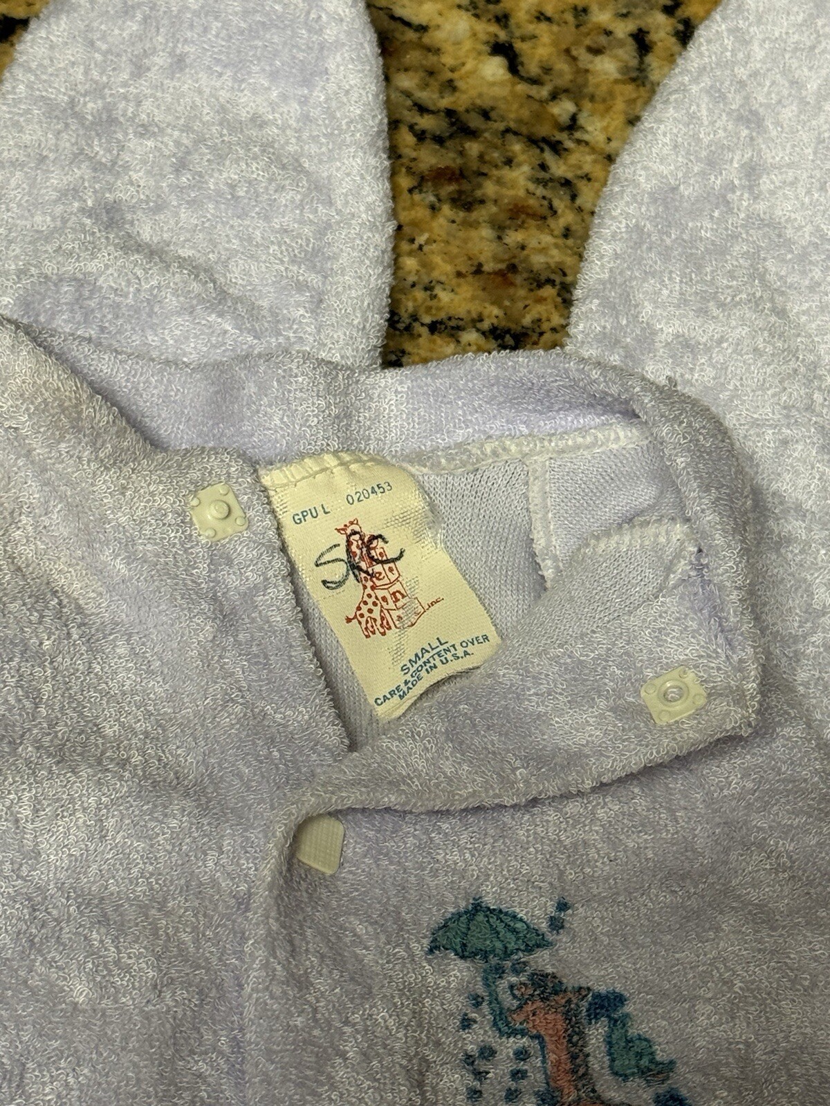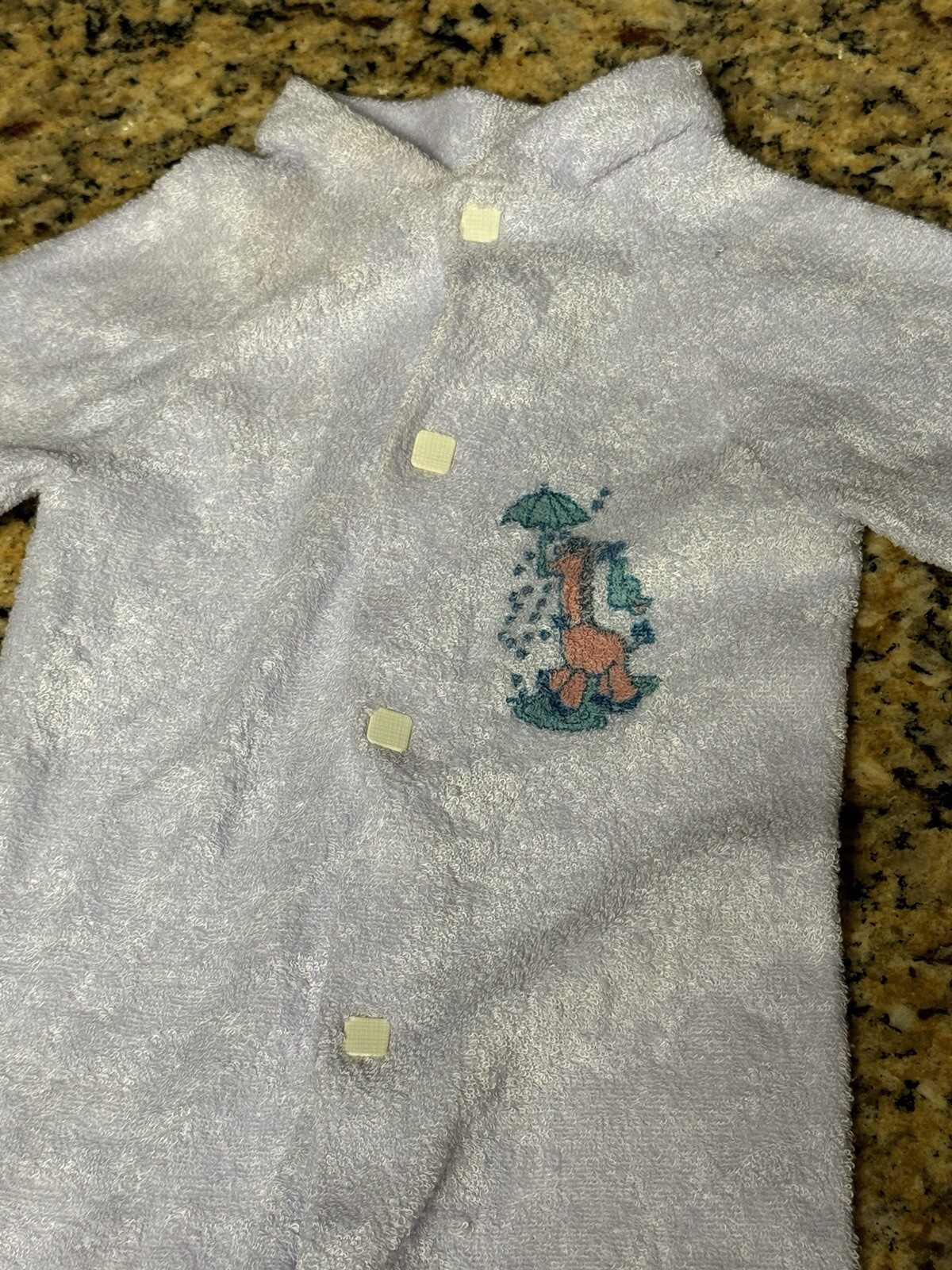 как выглядит Vintage 80s Baby Girls Pajamas Purple Terry Cloth Giraffe Square Snaps Size 0-3M фото