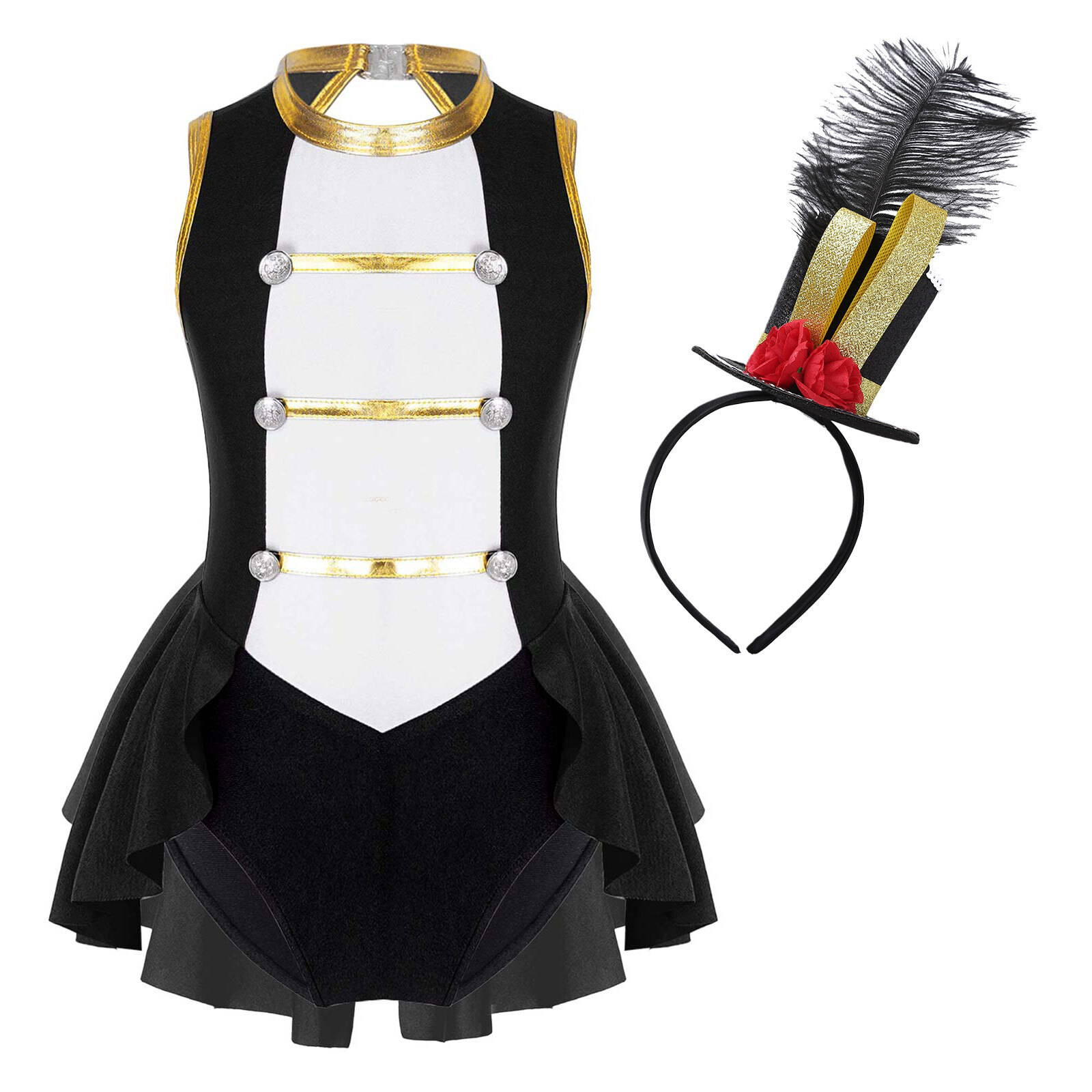 Kids Girls Hallowen Ballet Dance Leotard Dress Hat Gymnastics Bodysuit Costume
