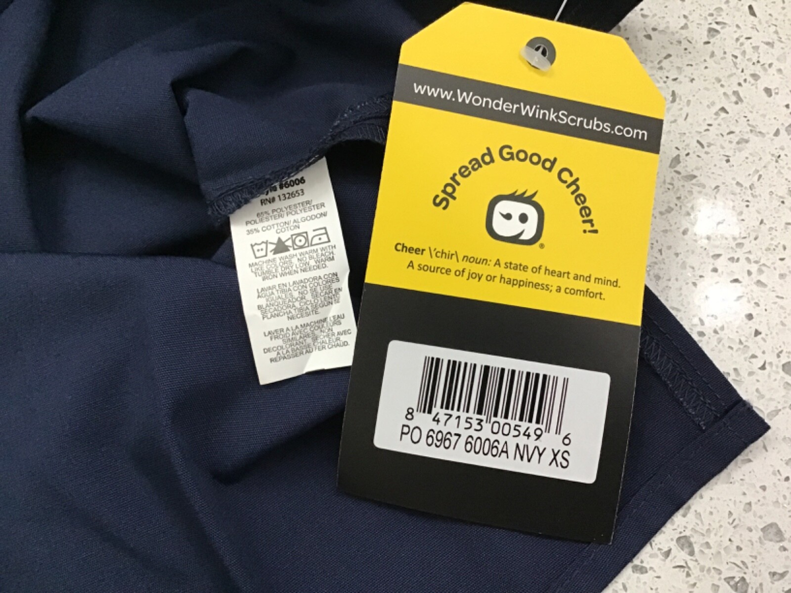 Wonder Wink Women s Medical Scrub Top Chest Pocket S/S Navy Blue Size XS NWT