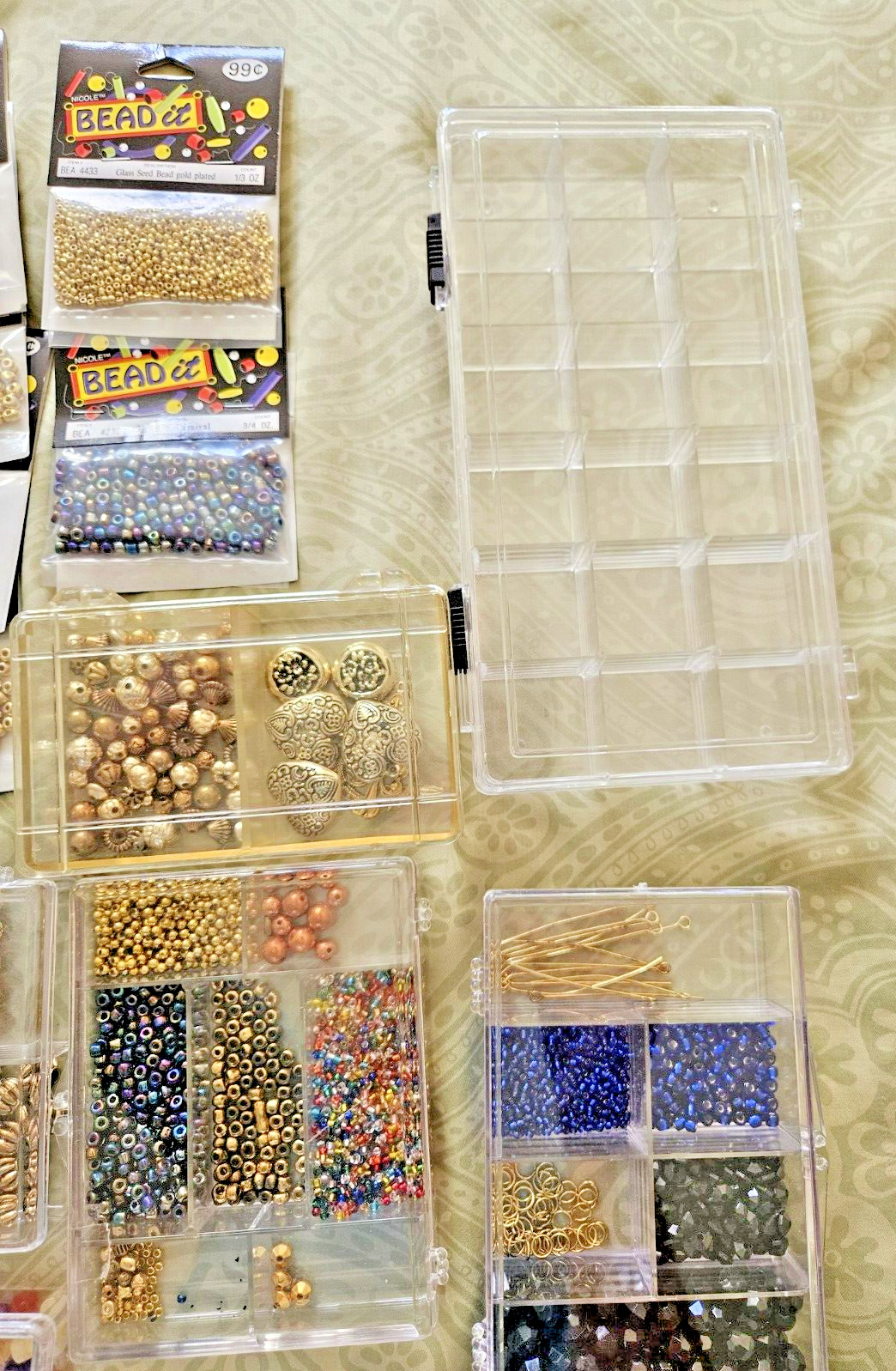 Large Lot Jewelry Making Supplies Goldtone Beads Findings Storage Boxes 4 lbs