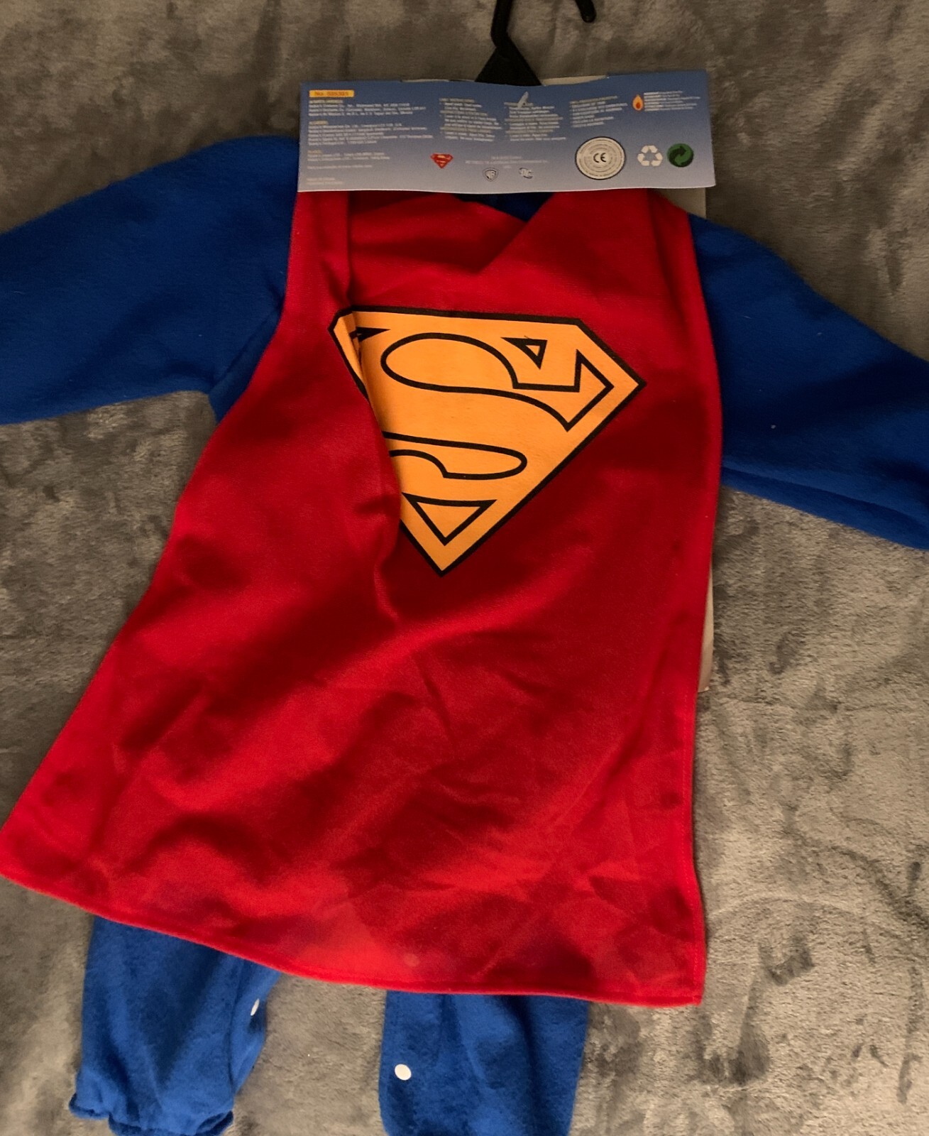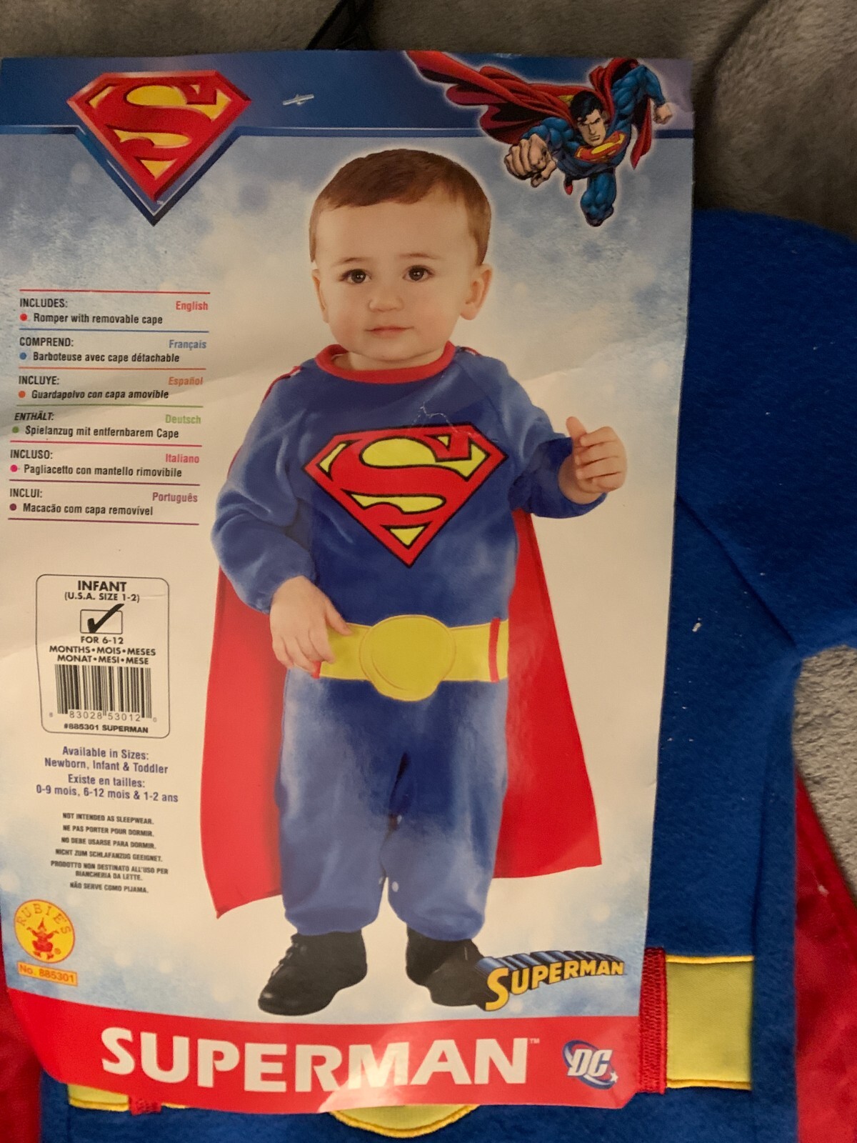 как выглядит Superman DC Comics Infant Costume 1-2 6-12 mo removable cape Halloween Boys NWT фото
