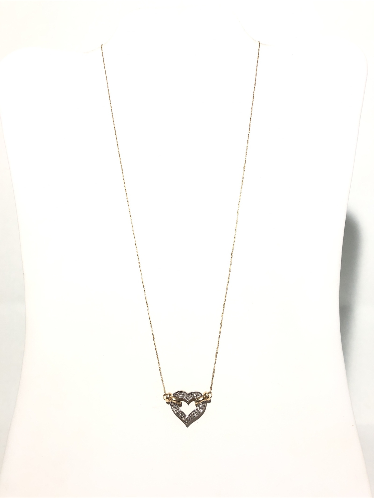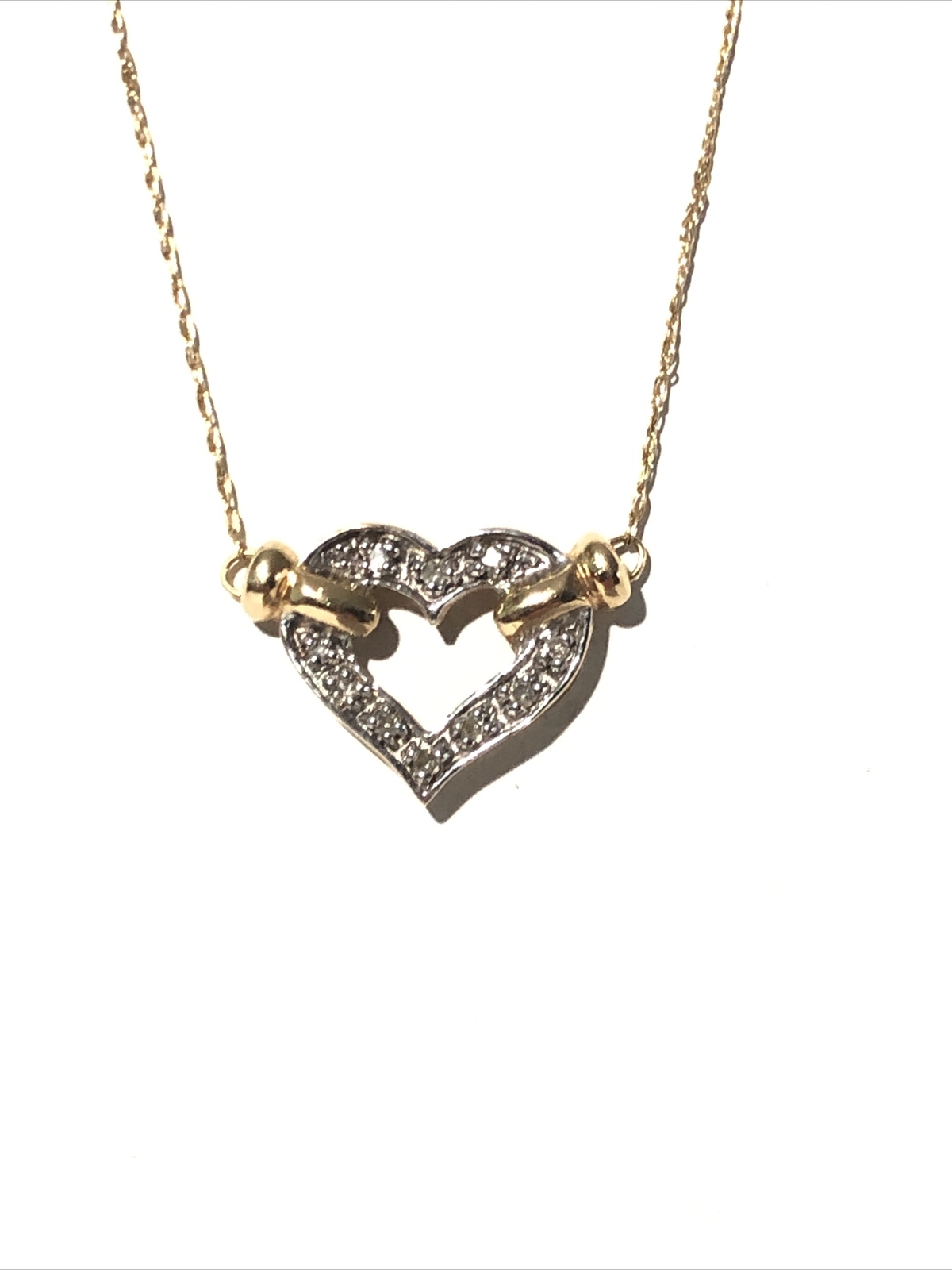 Women s 20 White Yellow Gold 10k Diamond Heart Pendant Necklace. 2.5G 10k