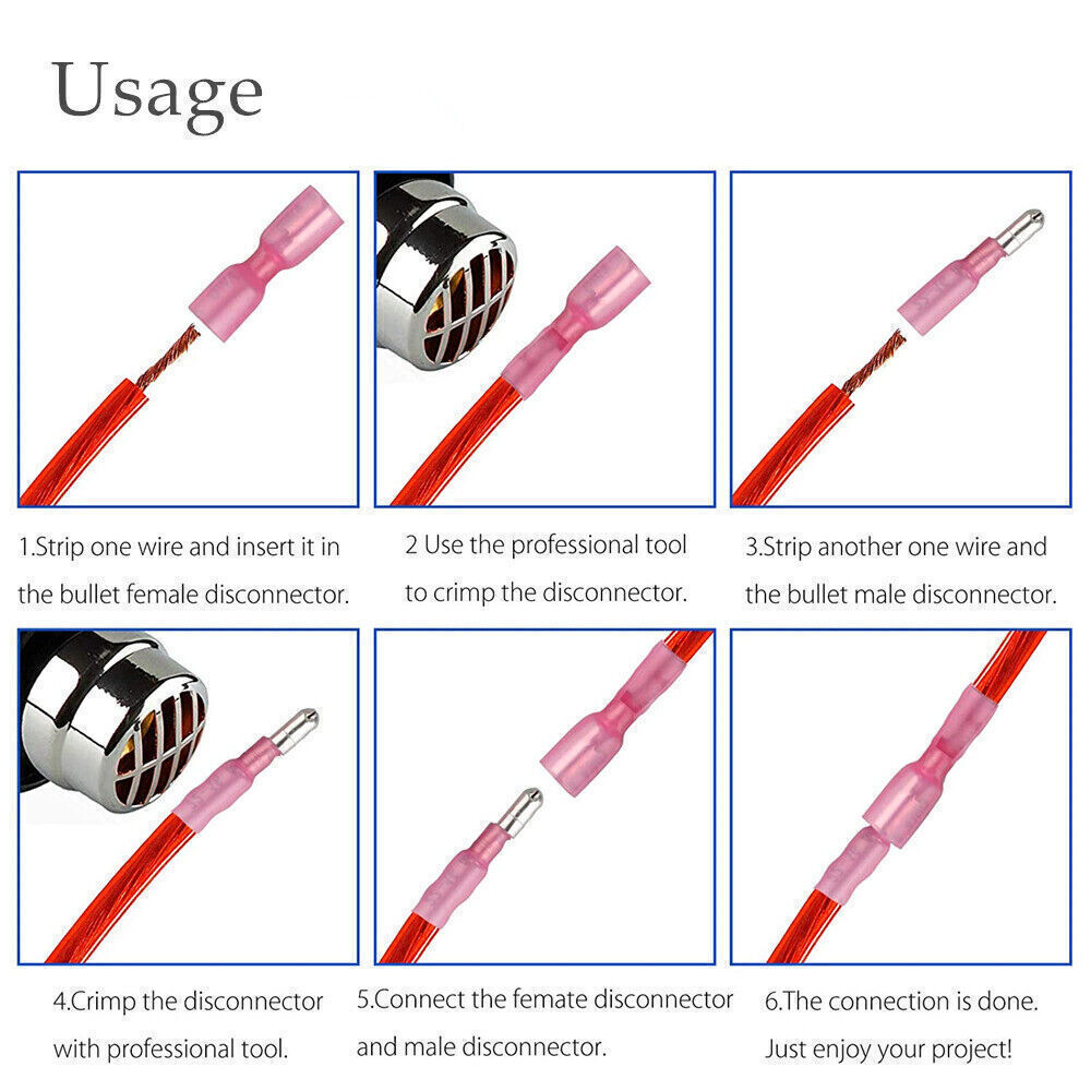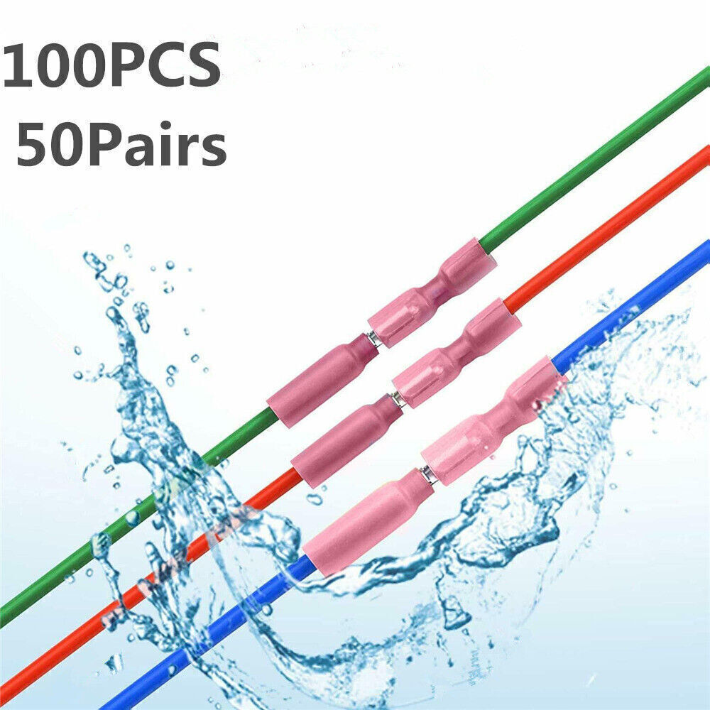22-16 AWG Heat Shrink Bullet Wire Connectors Male Female Crimp Terminals 50Pcs