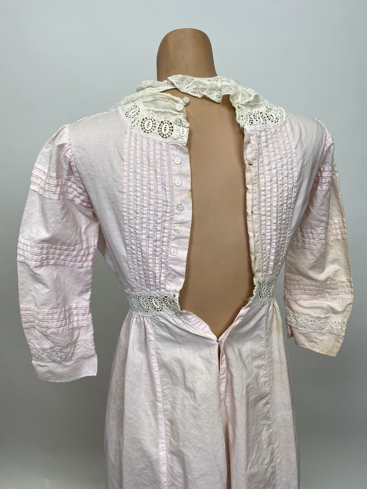 Antique Edwardian Pink Cotton Dress with White Lace Eyelet Details AS IS