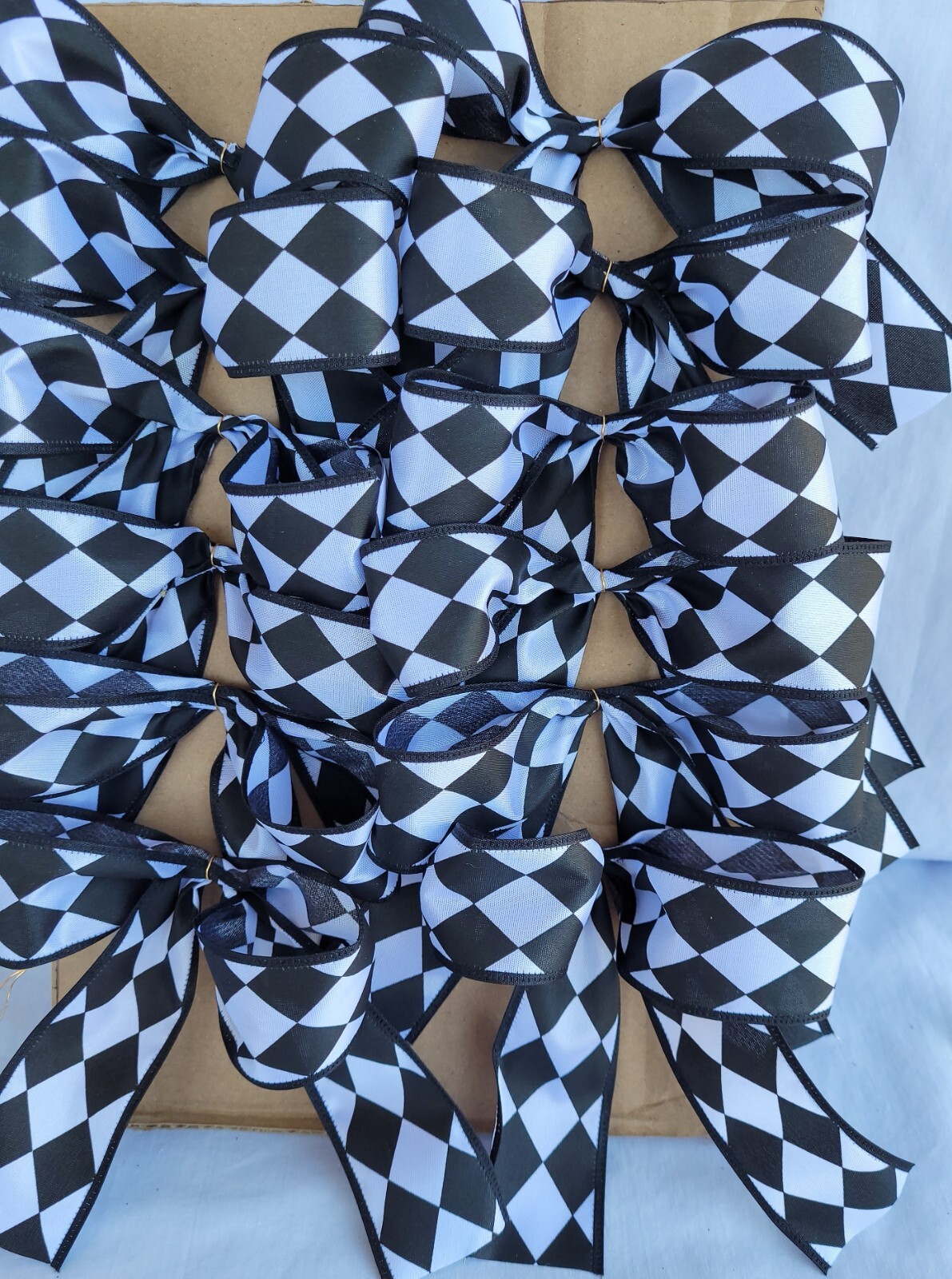 Set of 12 Small Handmade Christmas Tree Bows Package Bows Harlequin Design