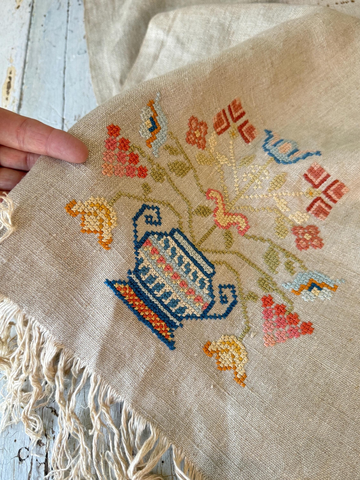59x21 RARE LARGE Turkish hand embroidered towel table runner embroidery antique