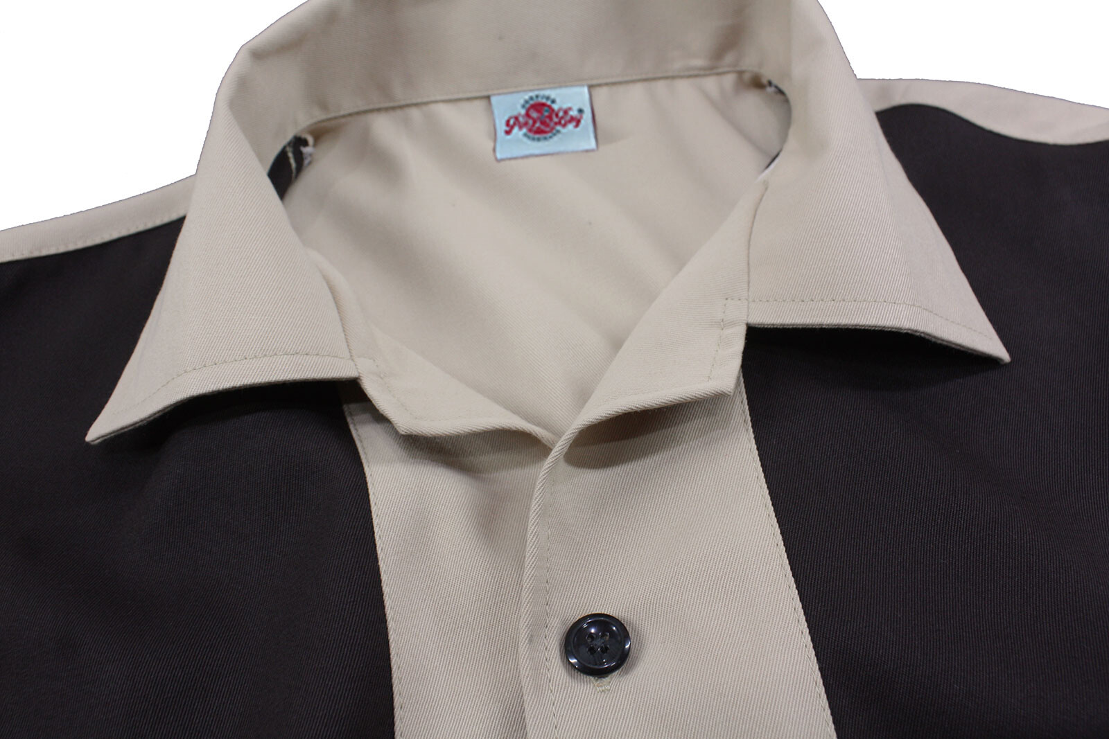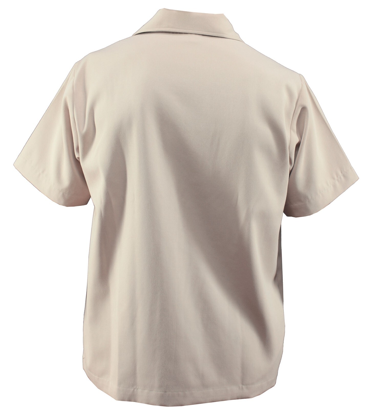 Vintage repro button up beige Bowling Shirt Gabardine Sheen Hemd Rockabilly 50's