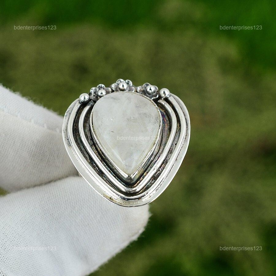 как выглядит Gift For Her 925 Silver Natural Rainbow Moonstone Stackable Adjustable Ring фото