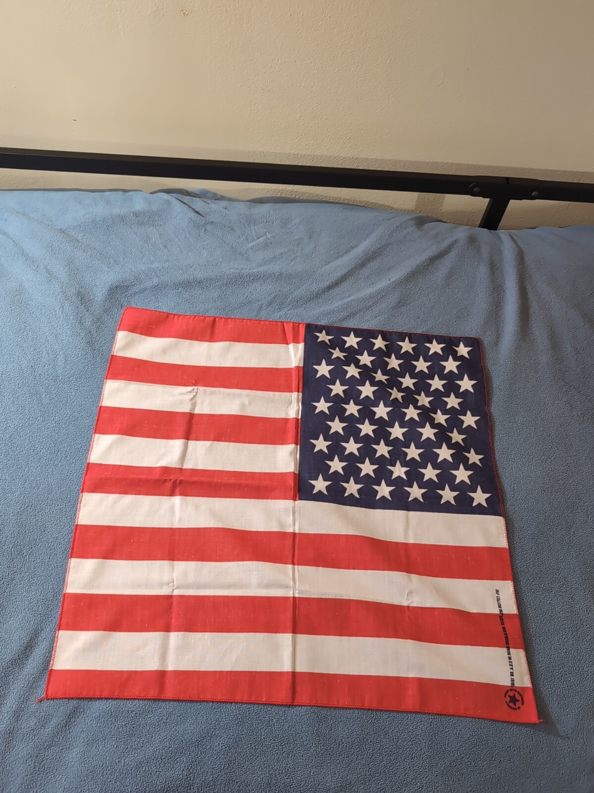 как выглядит Vintage USA Flag Pattern Bandana American Made фото