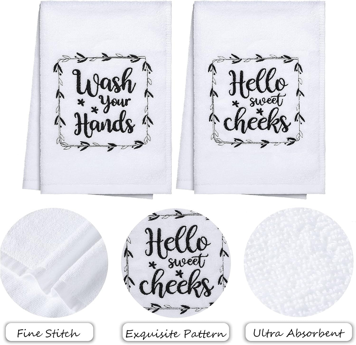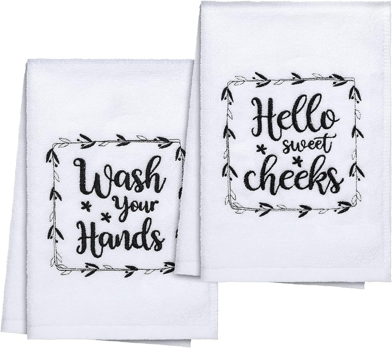 2 Funny Hand Towels with Sayings Rustic Kitchen Bathroom Decorative 16X24 Inch