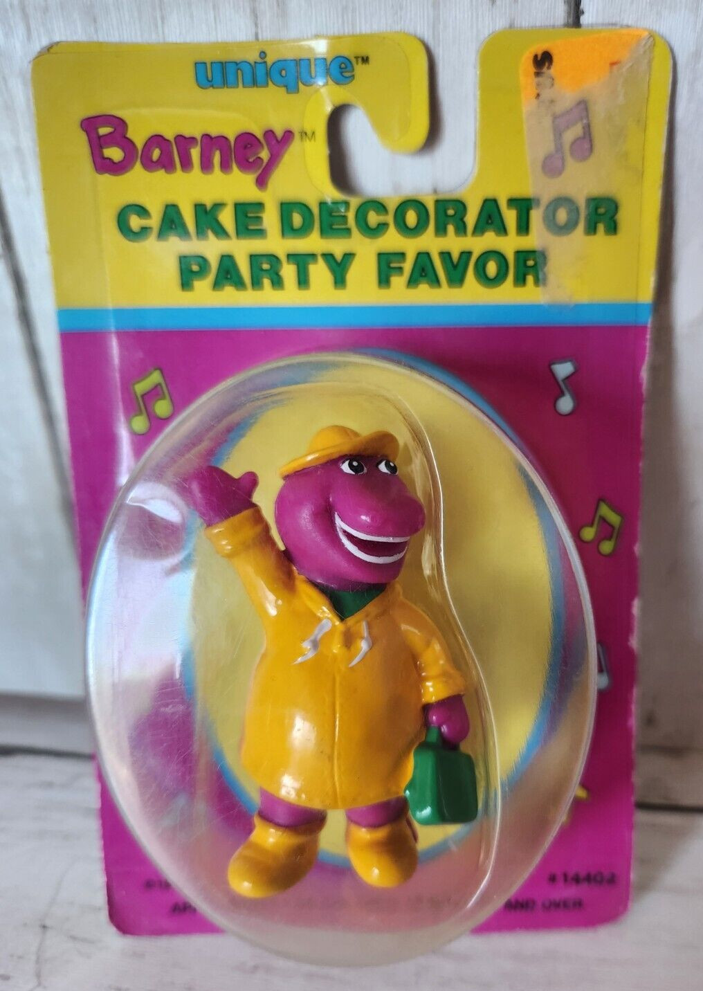 1993 Barney Birthday Cake Topper Figure Decoration Party Favor Raincoat NOS