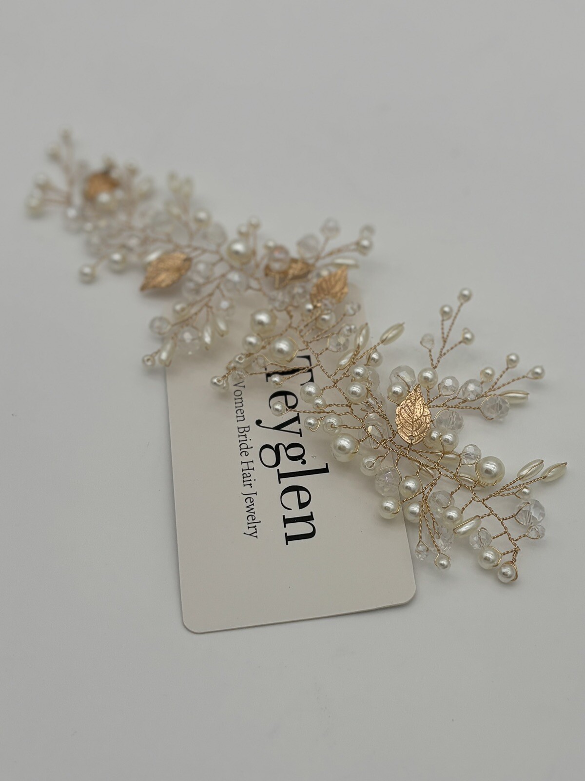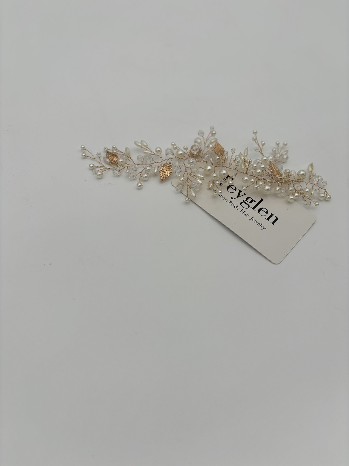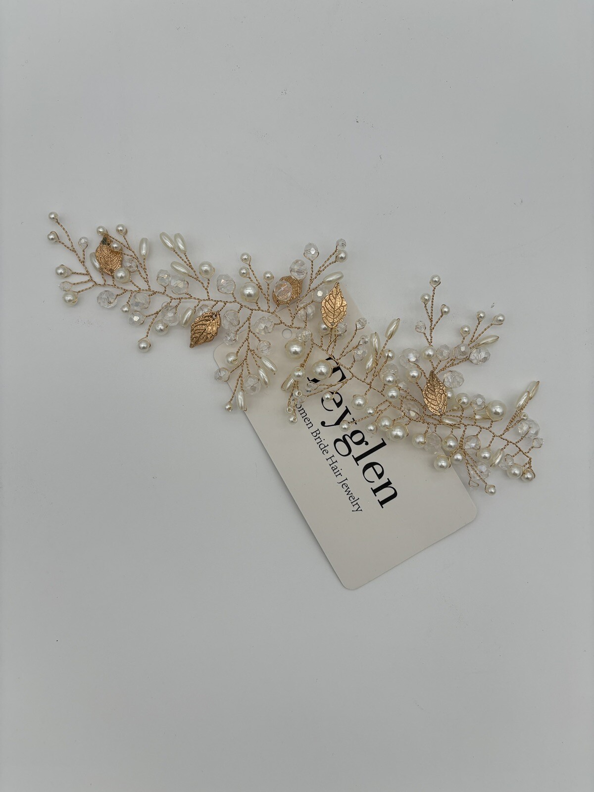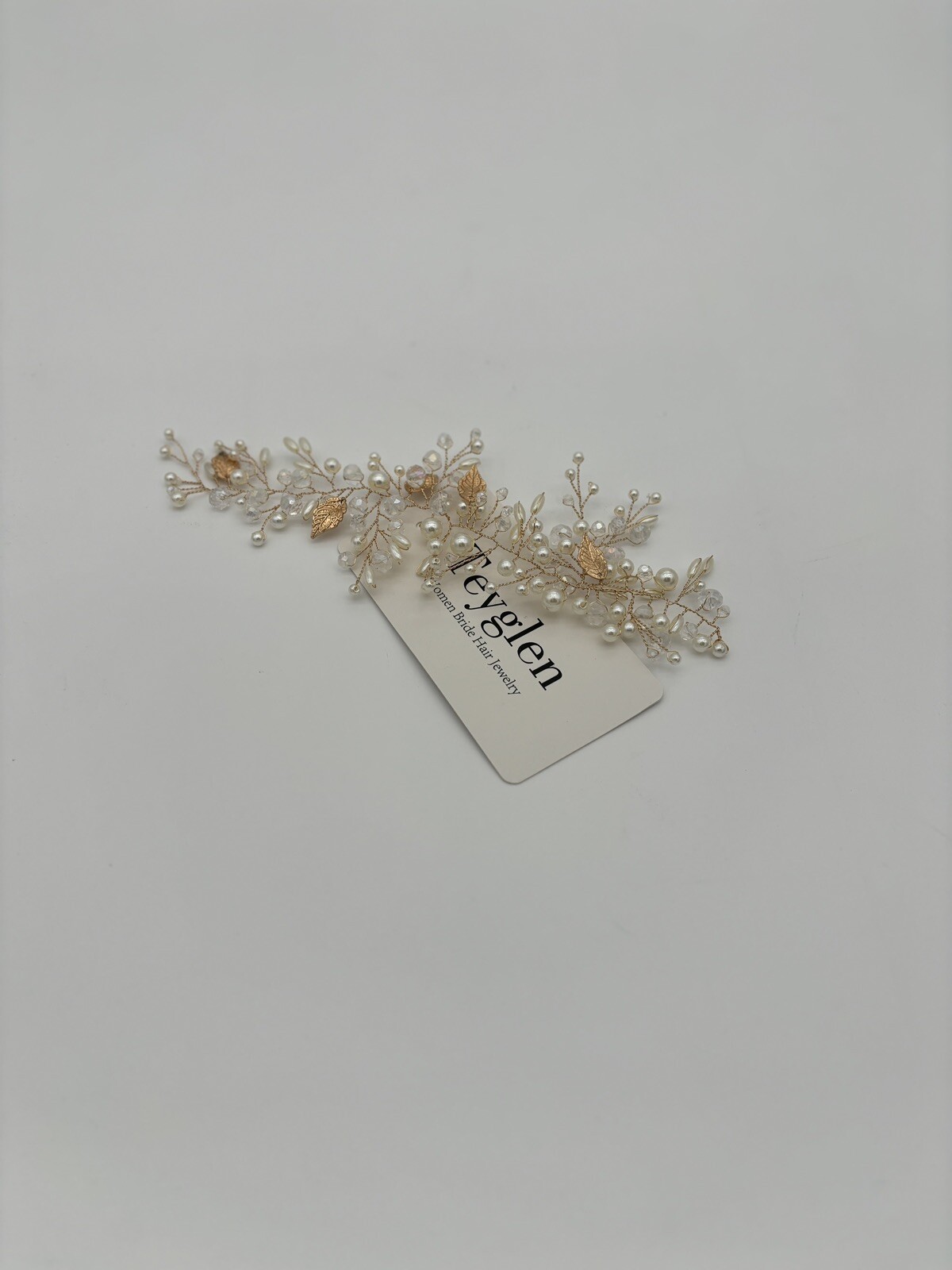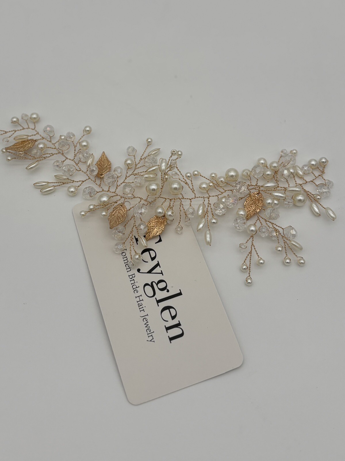 Teyglen Gold Leaf Hair Vine Bridal Pearl Crystal Hair Vine Headpiece