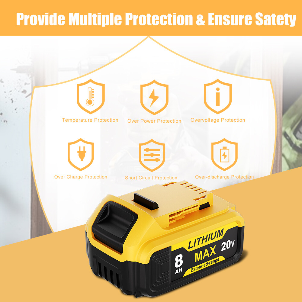 2Pack For DeWalt 20V 20 Volt Max 8.0AH Lithium Ion Battery DCB206 DCB205 DCB207