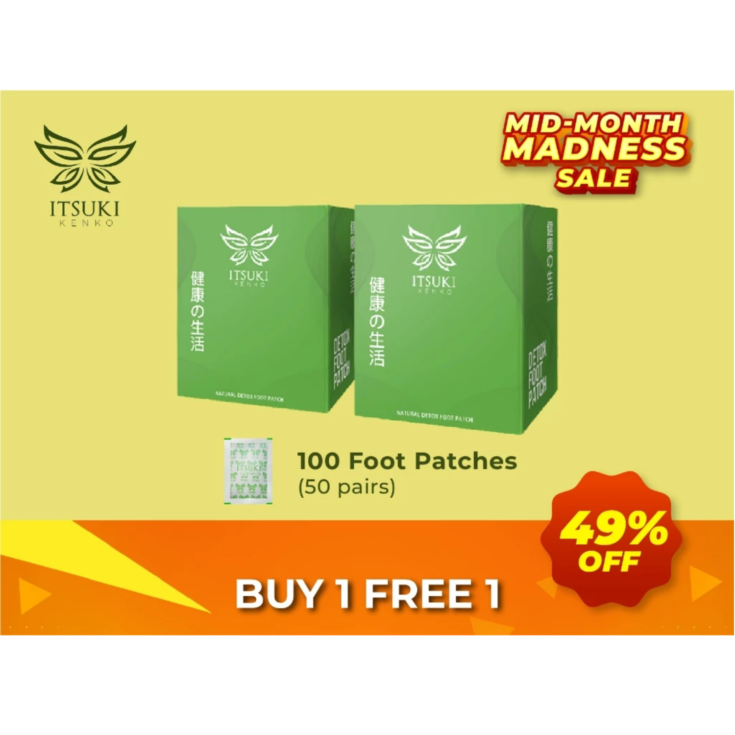 ITSUKI KENKO FOOT PATCH HERBAL CLEANSING DETOXIFYING FREE EXPRESS SHIPPING