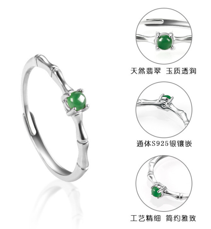 как выглядит Certified Burma Grade A Natural Green A Jade Jadeite Gift 925s Bamboo node Rings фото