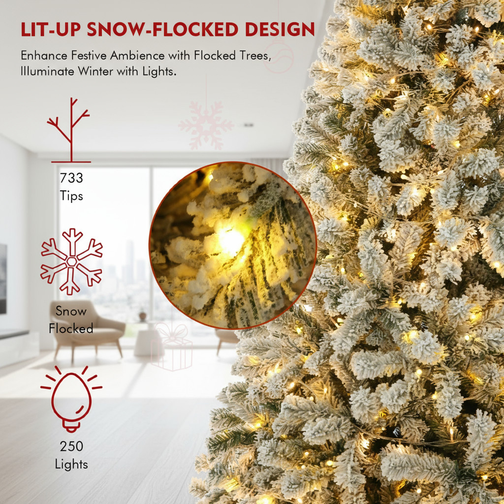 6ft Pre-lit Artificial Flocked Christmas Tree w/8 Adjustable Flash Rate Modes US
