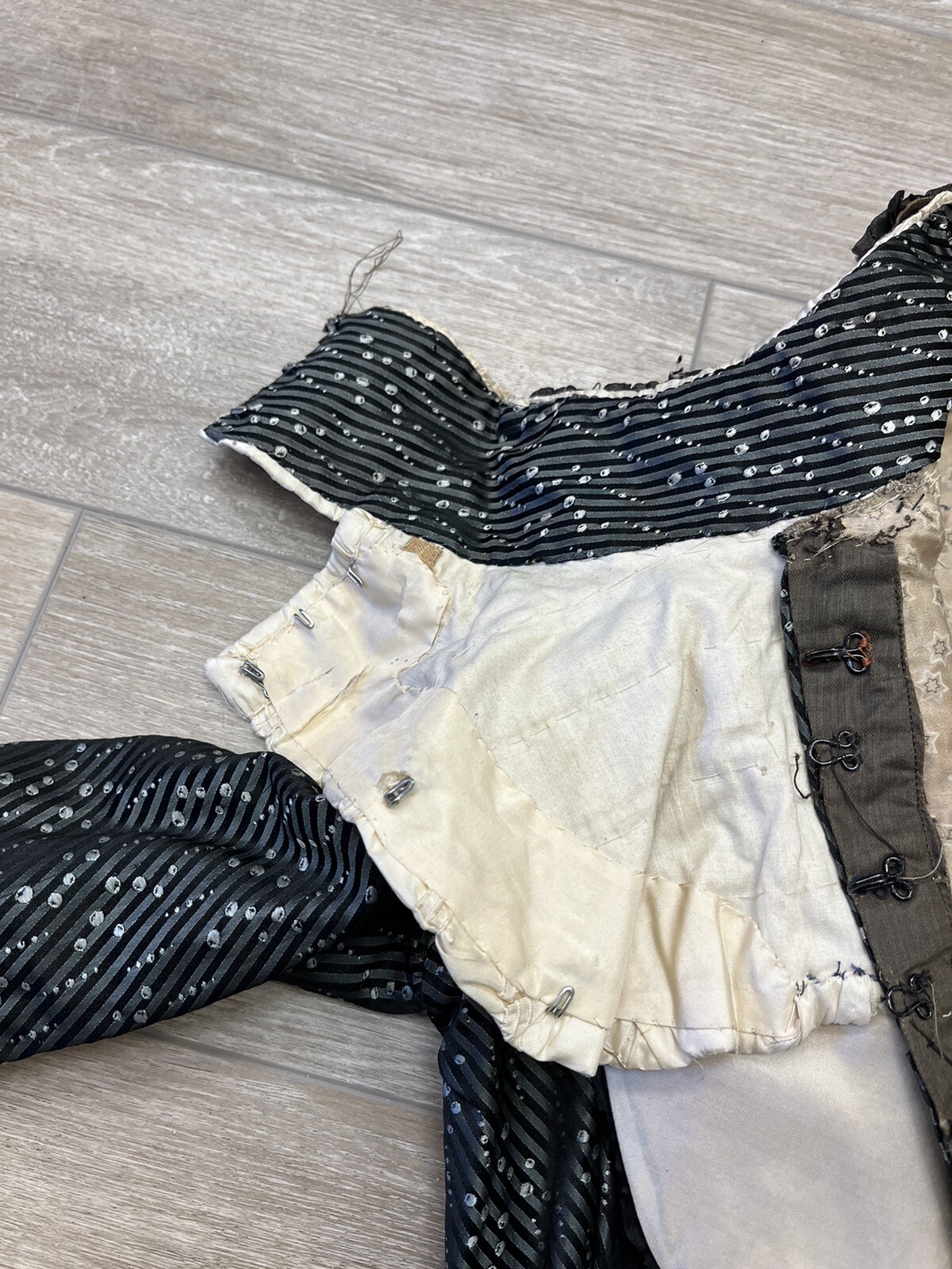 Antique Victorian Black Silk Jacquard Bodice Stripes and Bubble Pattern AS IS