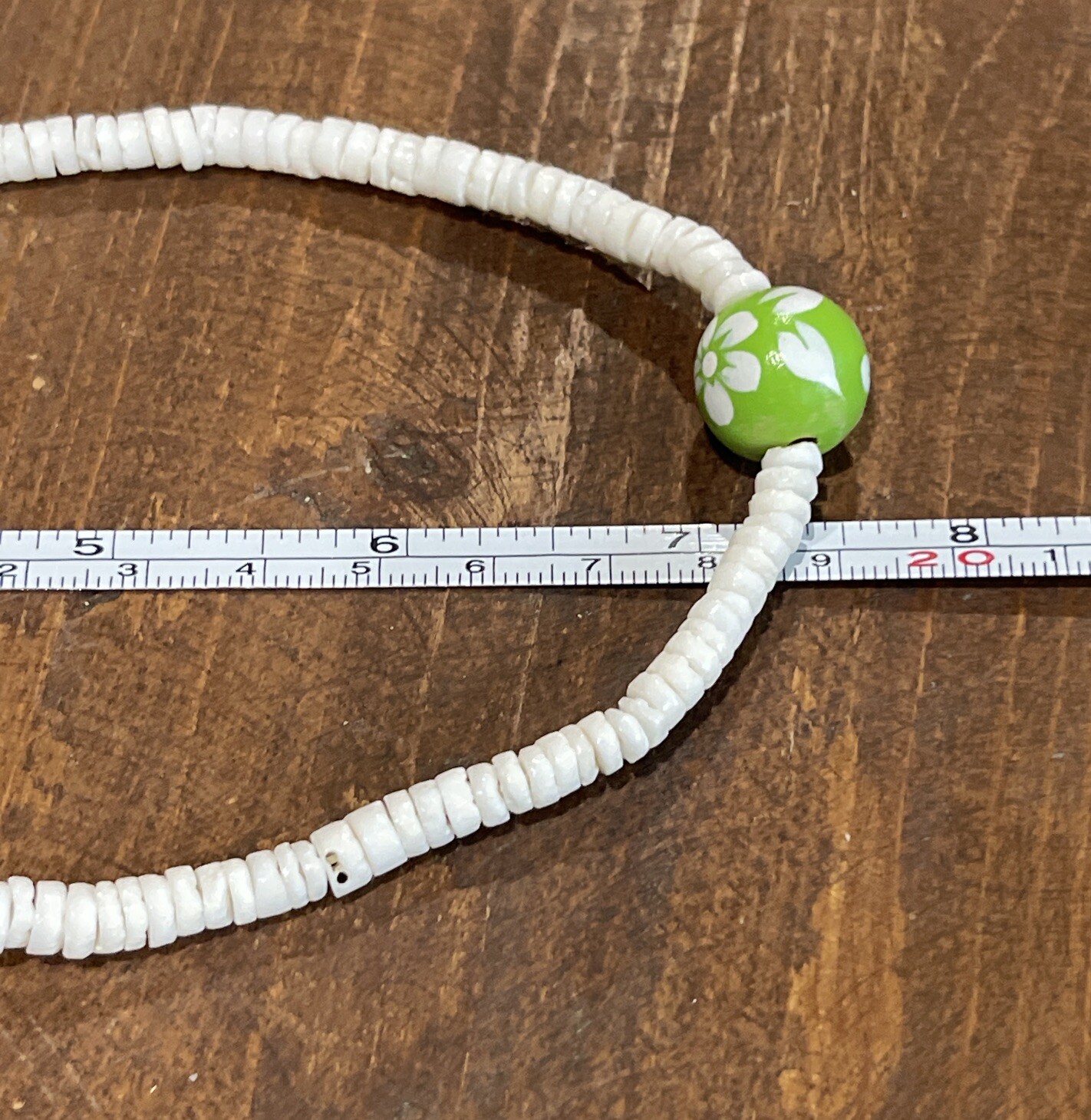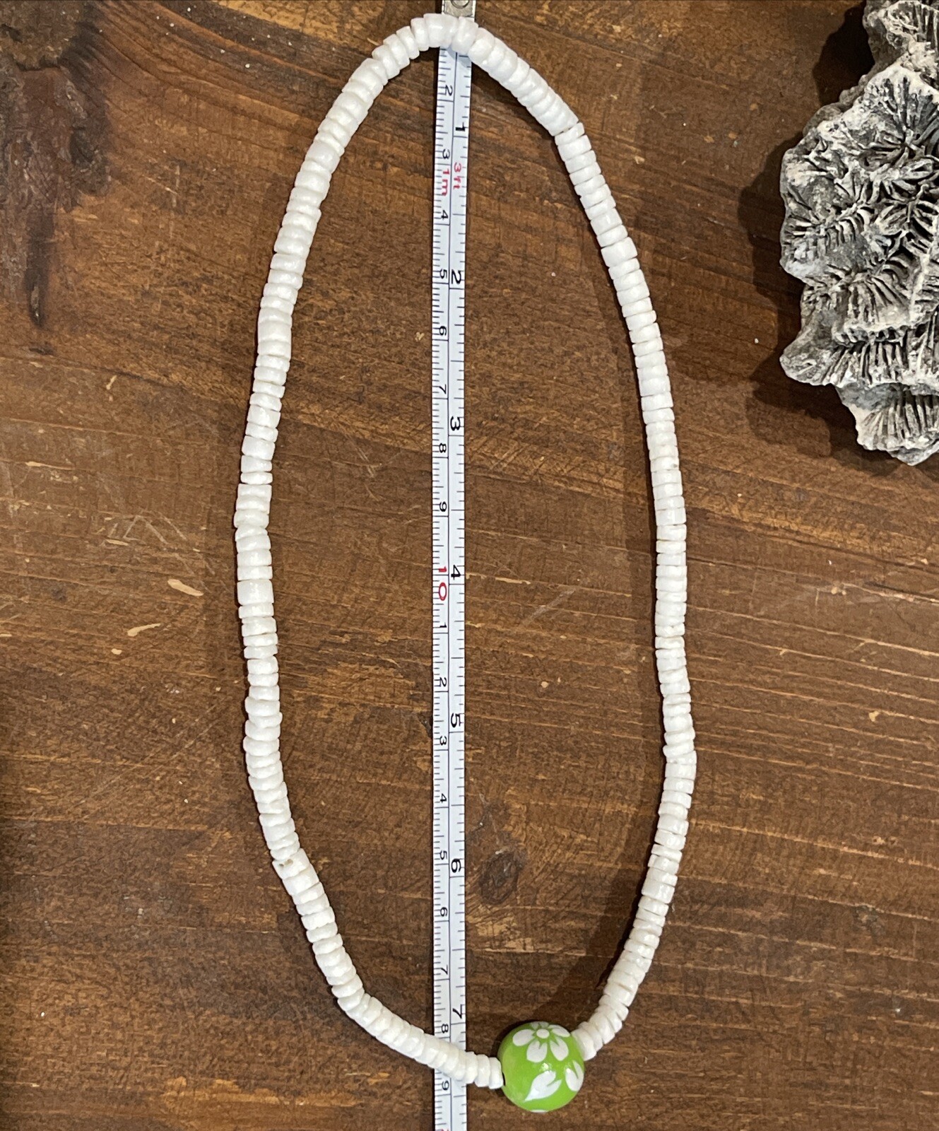 как выглядит Puka Shell Necklace Surfer Island Beach 16 With Green And White Floral Stone фото