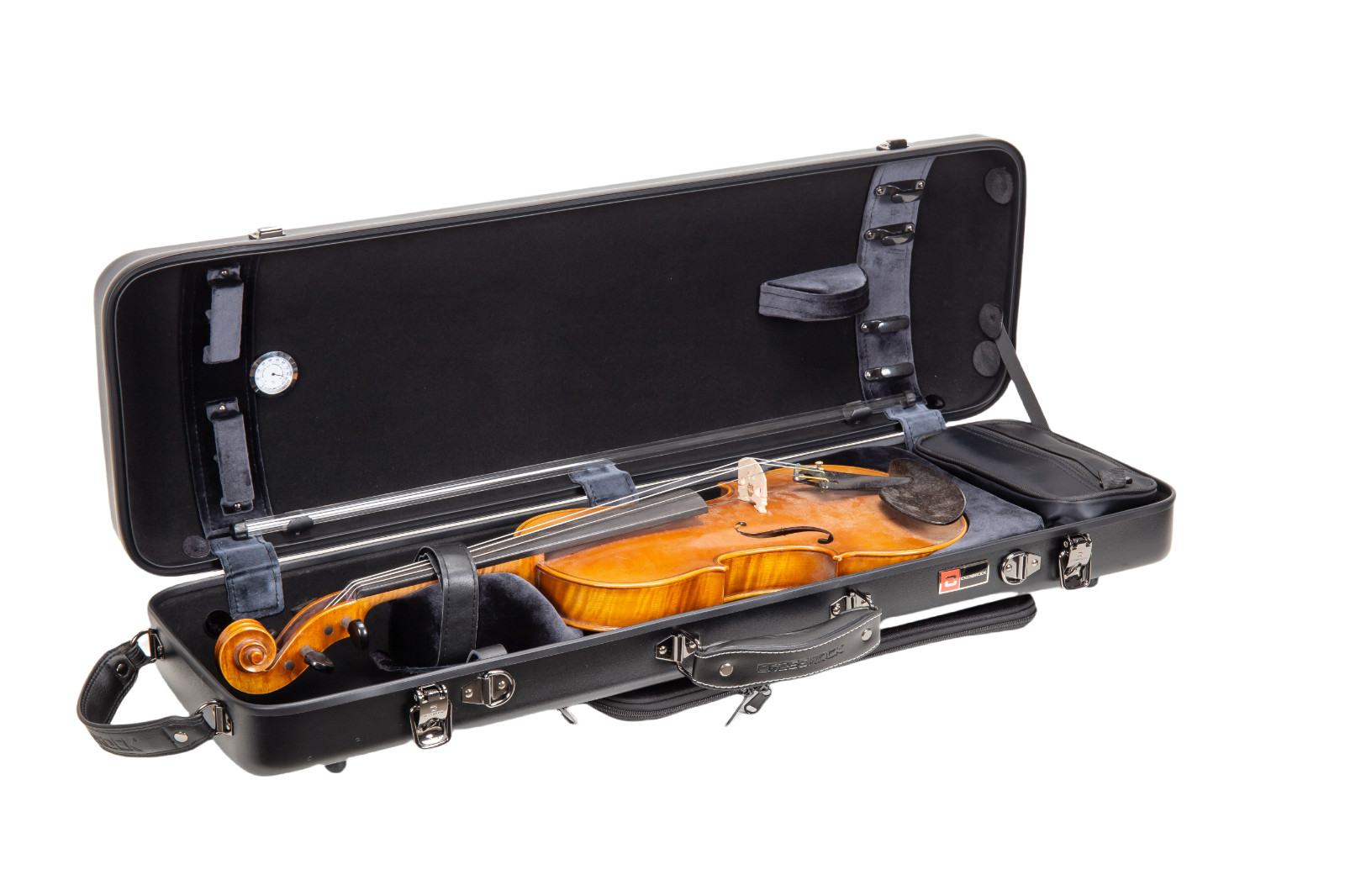 Crossrock Poly Carbon Oblong Case for 4/4 Full-Size Violin-With Hygrometer-Black