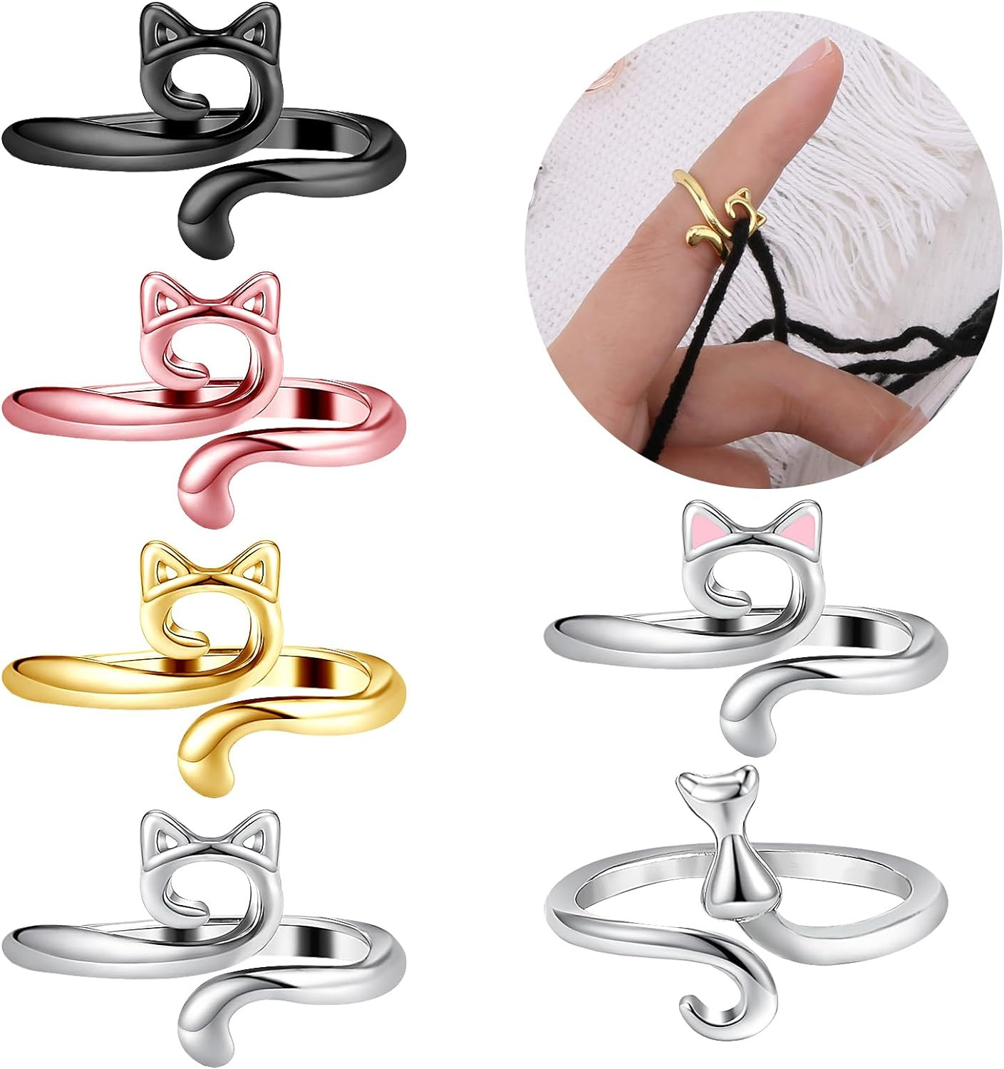 как выглядит 6 Pcs Crochet Rings for Finger Adjustable Crochet Knitting Loop Accessories Meta фото