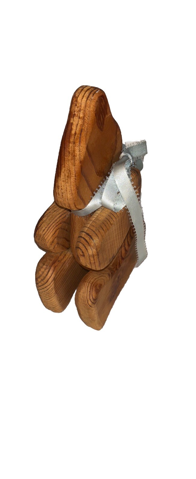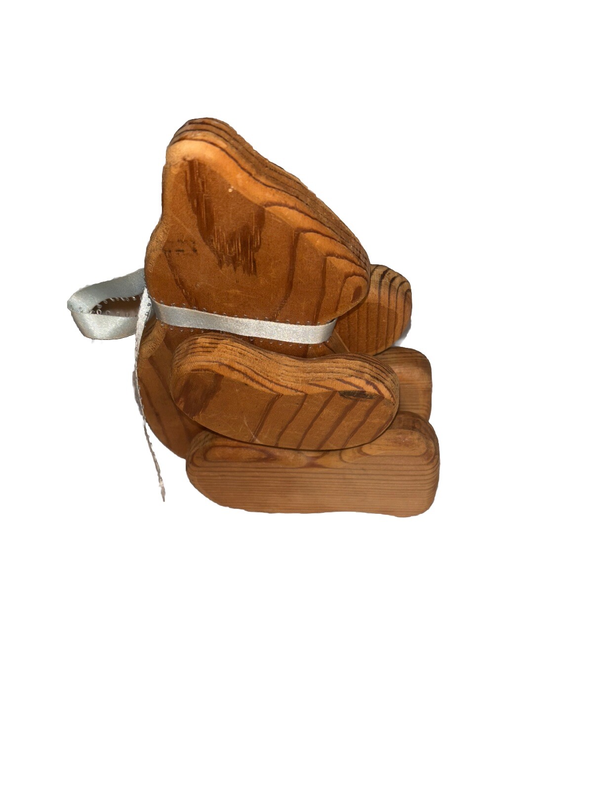 Vintage Handmade Carved Wood Teddy Bear For Nursery Decor Light Brown Wood Grain