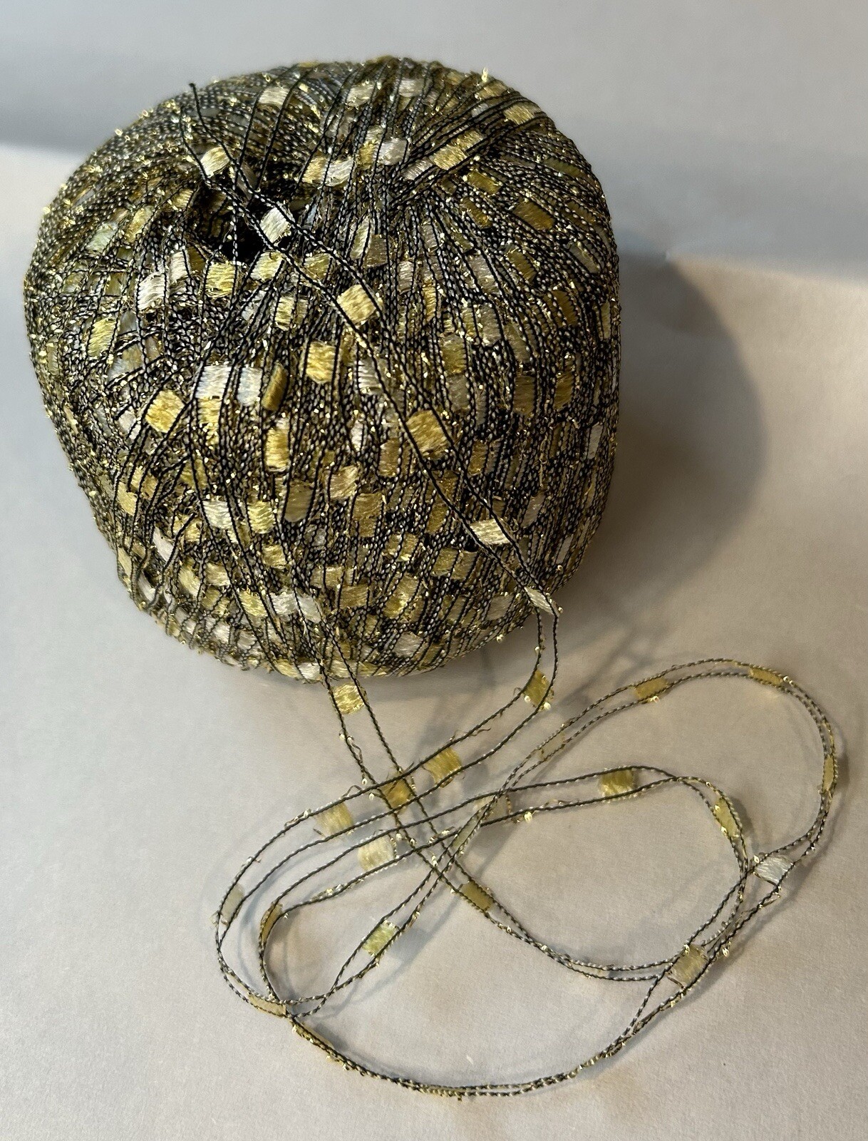как выглядит Berlini Ladder Ribbon Glitter Yarn Champagne 142yd/130m 6.5mm Needle фото