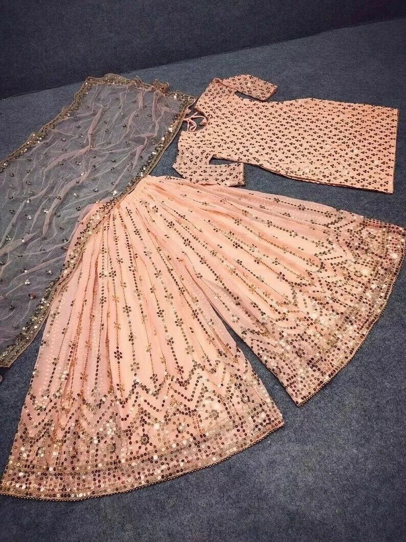 Palazzo Work: Heavy Embroidery And 9mm Sequence Work
