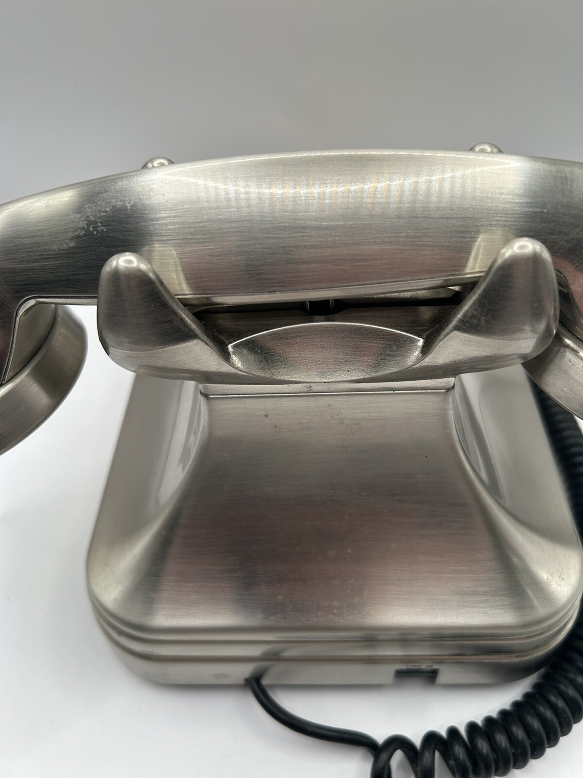 Vintage Grand Phone Corded Push Button With Flash Redial Mettallic Silver