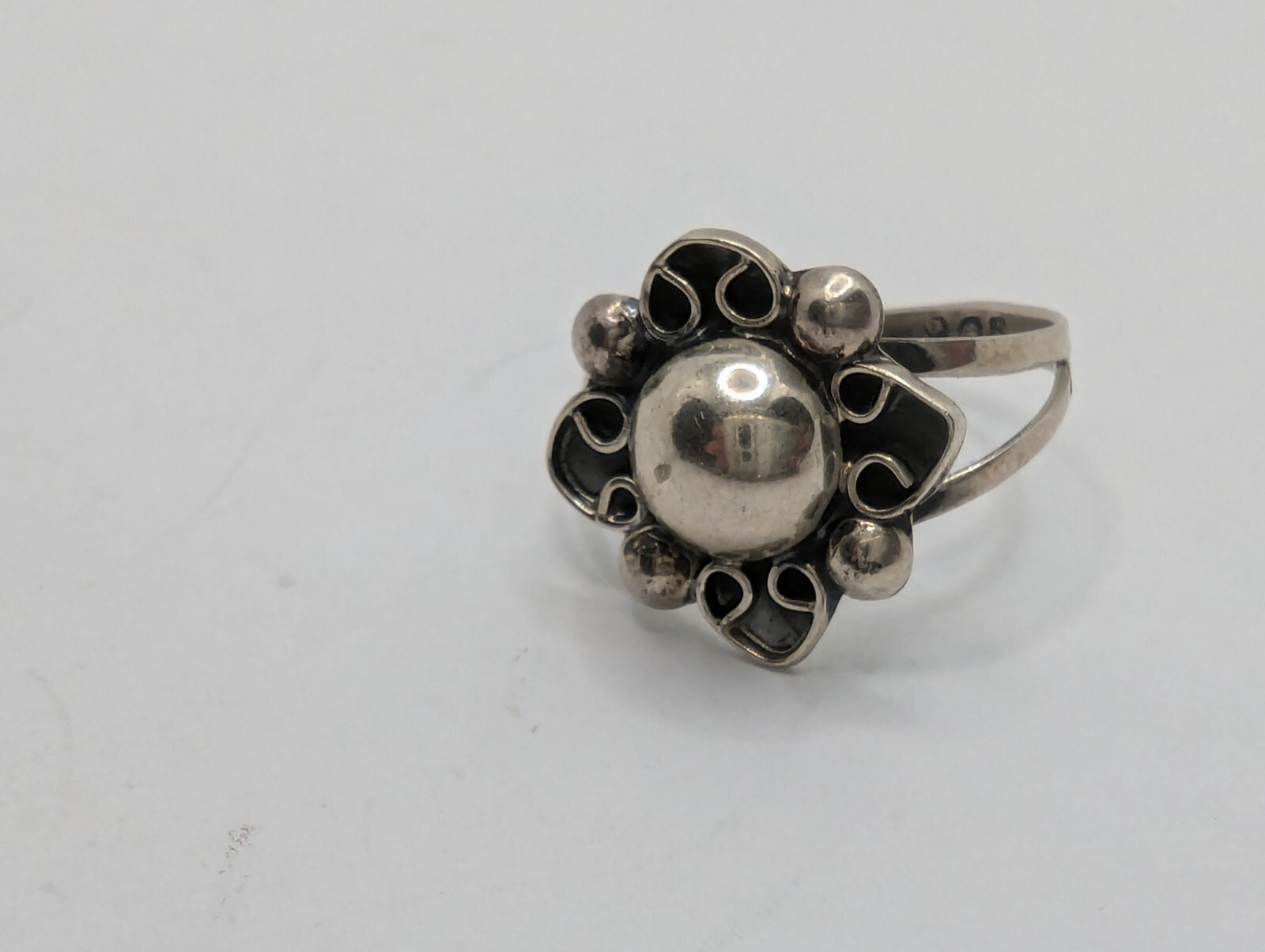 как выглядит Vintage Southwestern Sterling Silver 925 Flower Ring Size 6.75 фото