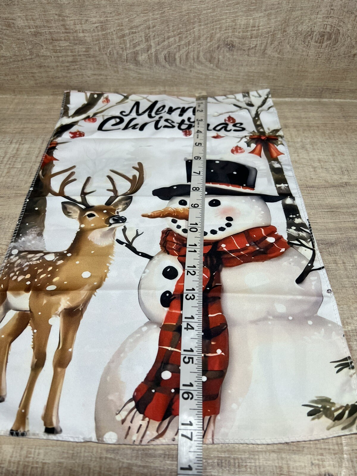Snowman And Deer Garden Welcome Flag 11x17 Winter Double Sided Christmas