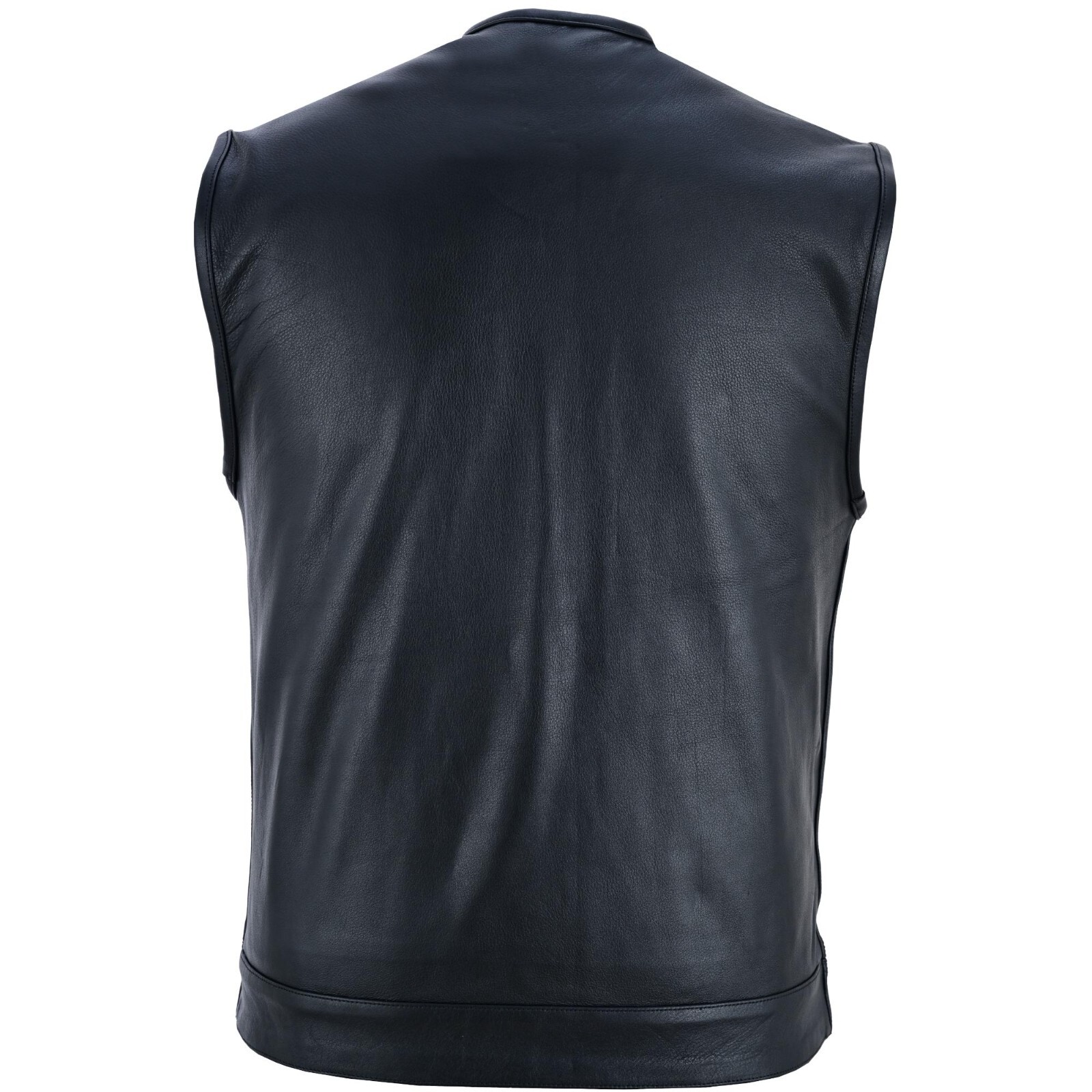 SOA Men's Motorcycle Vest Real Leather Club Concealed Carry Pockets Biker Vest