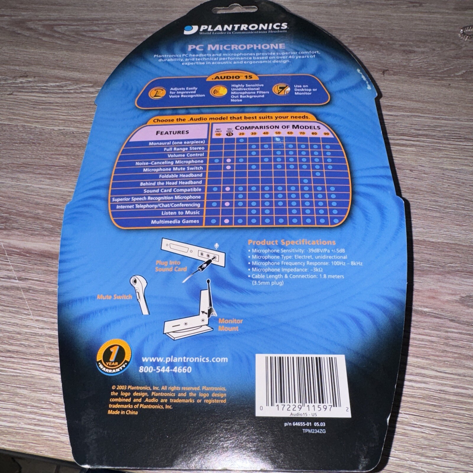 Plantronics Audio 15 PC microphone X box Skype Google talk noise canceling M22