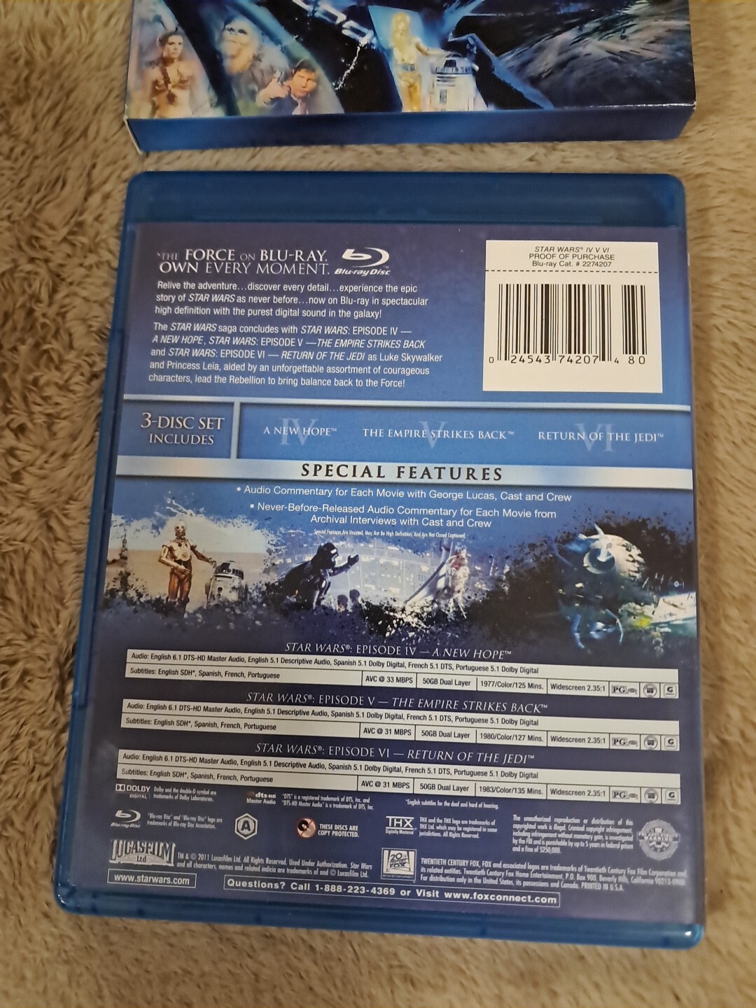 как выглядит STAR WARS IV NEW HOPE V EMPIRE STRIKES BACK VI RETURN JEDI BLU-RAY BOX SET фото
