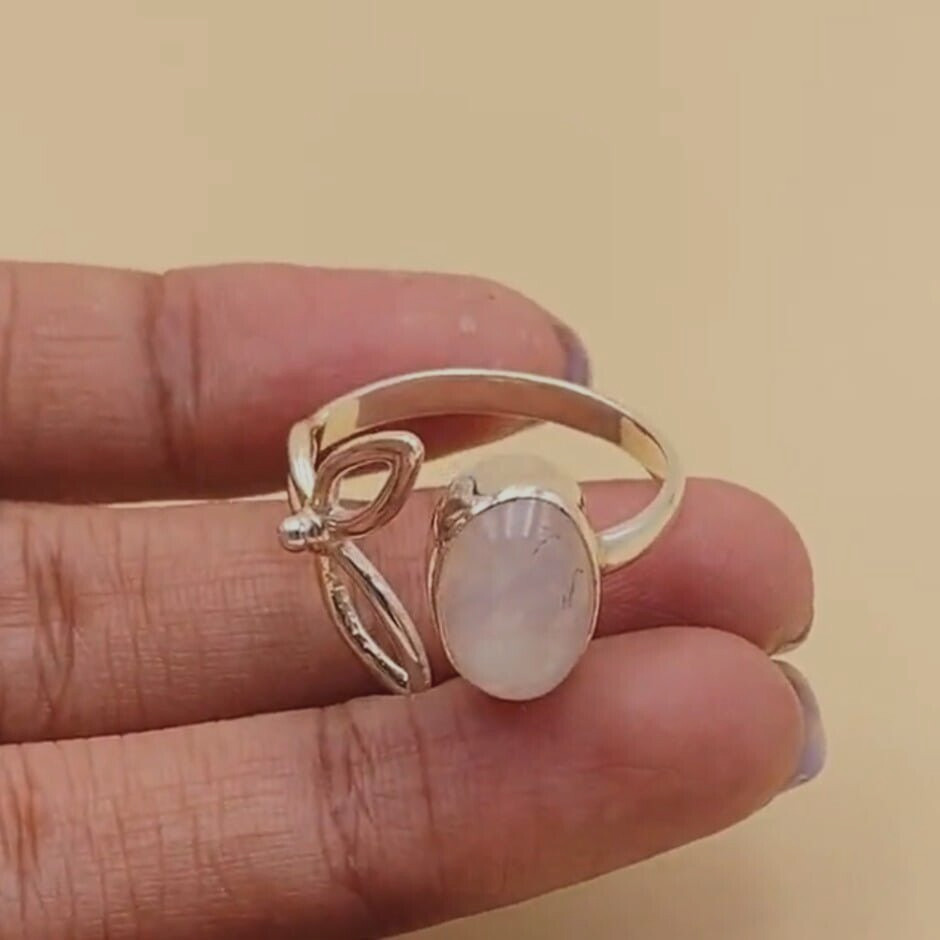 как выглядит Natural Moonstone Gemstone Handmade Ring,18k Gold Plated925 Sterling Silver Ring фото